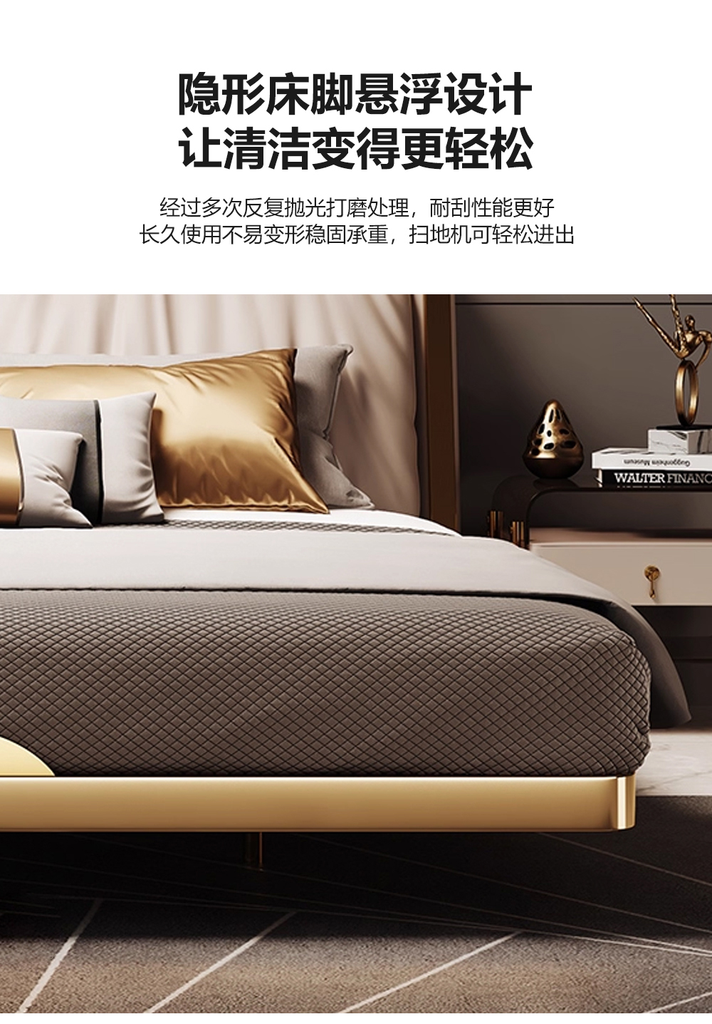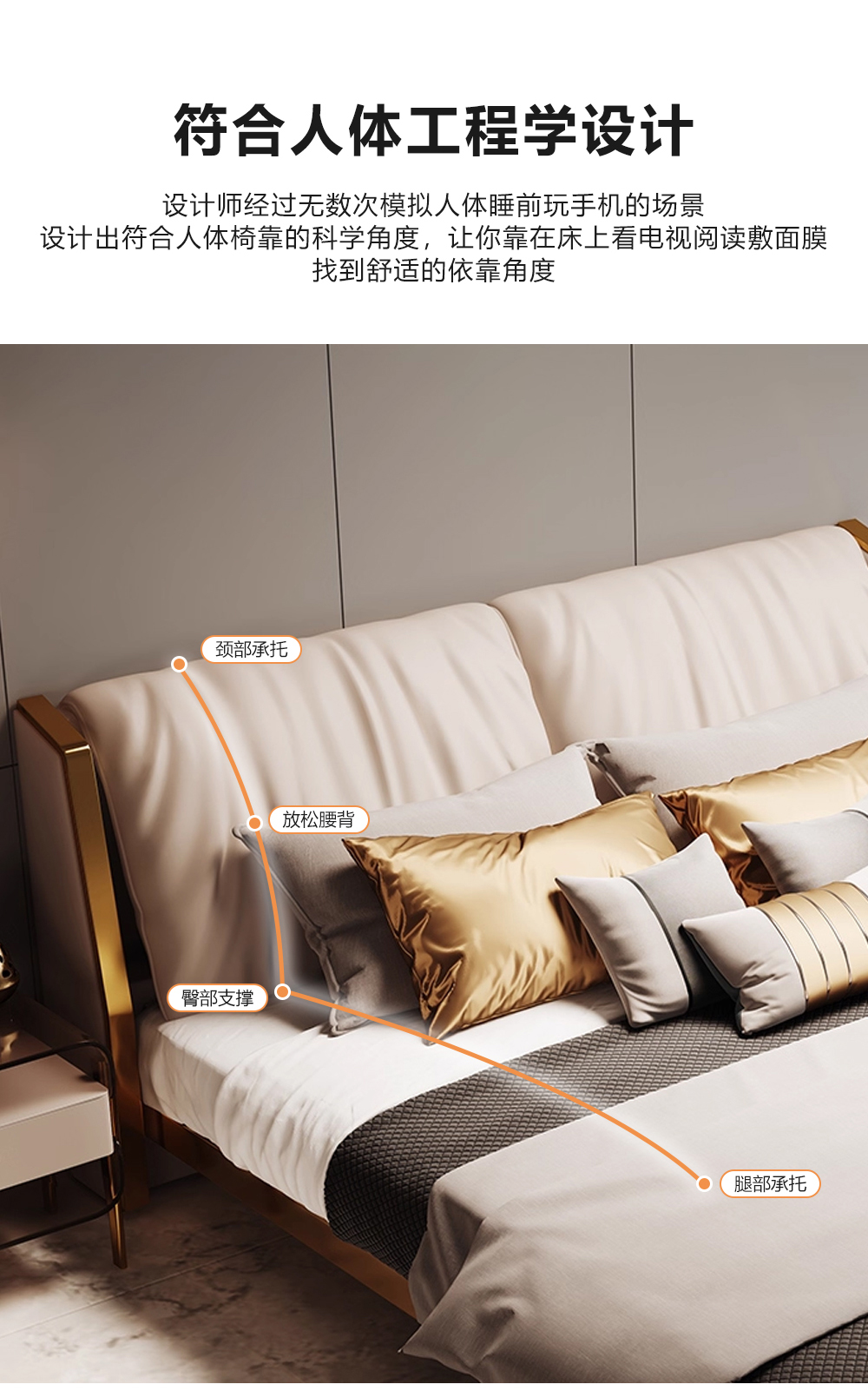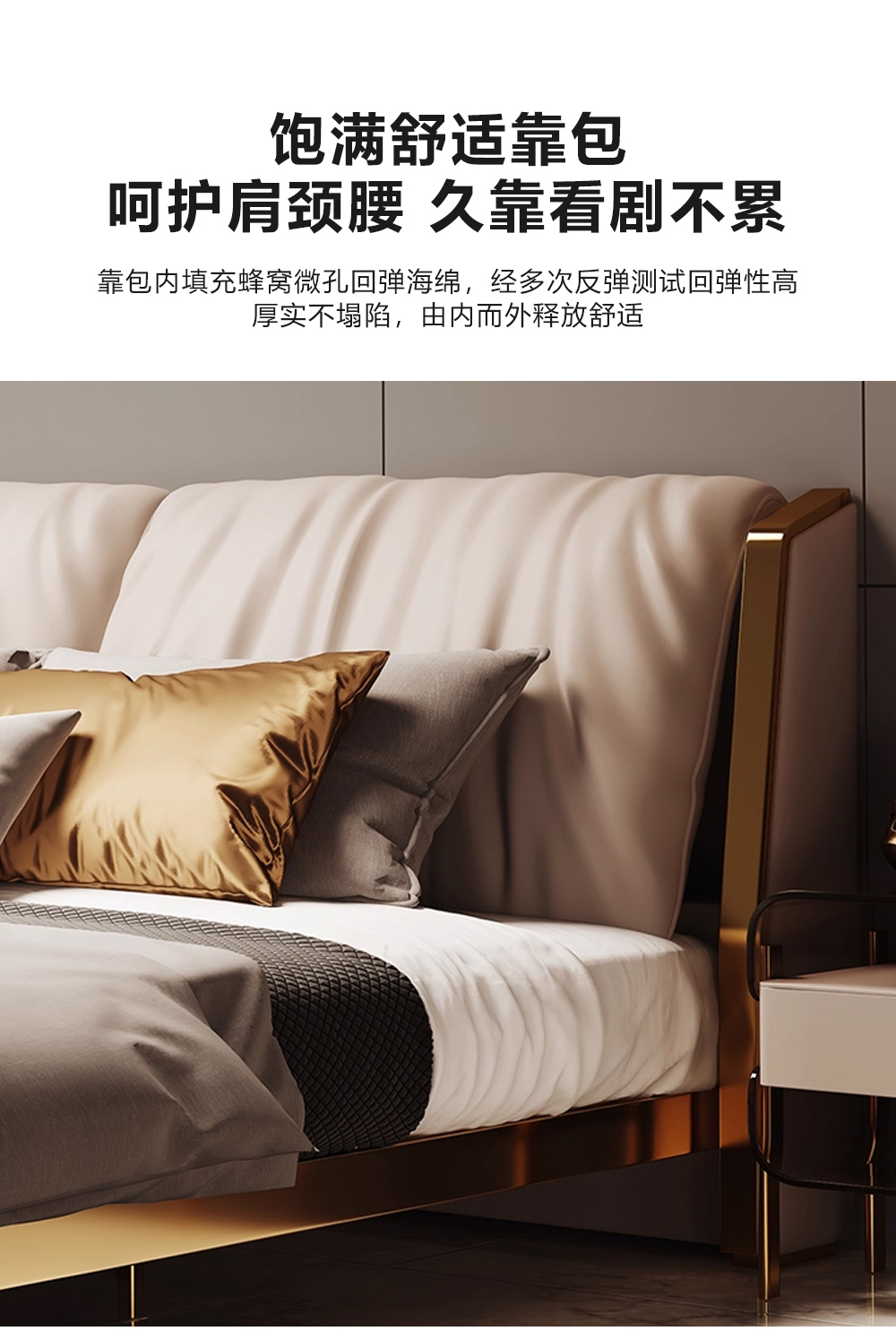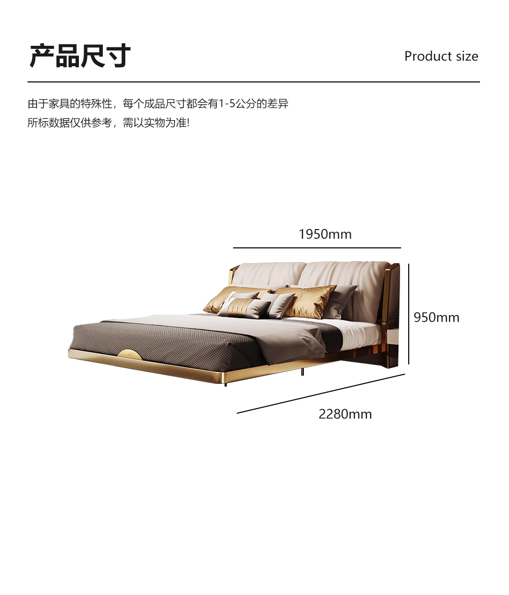 小红书系列 现代简约 实木框架+高回弹海绵+铜色不锈钢五金+仿真皮+仿皮 1.8米床