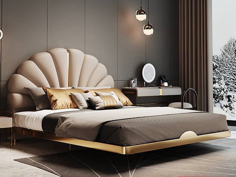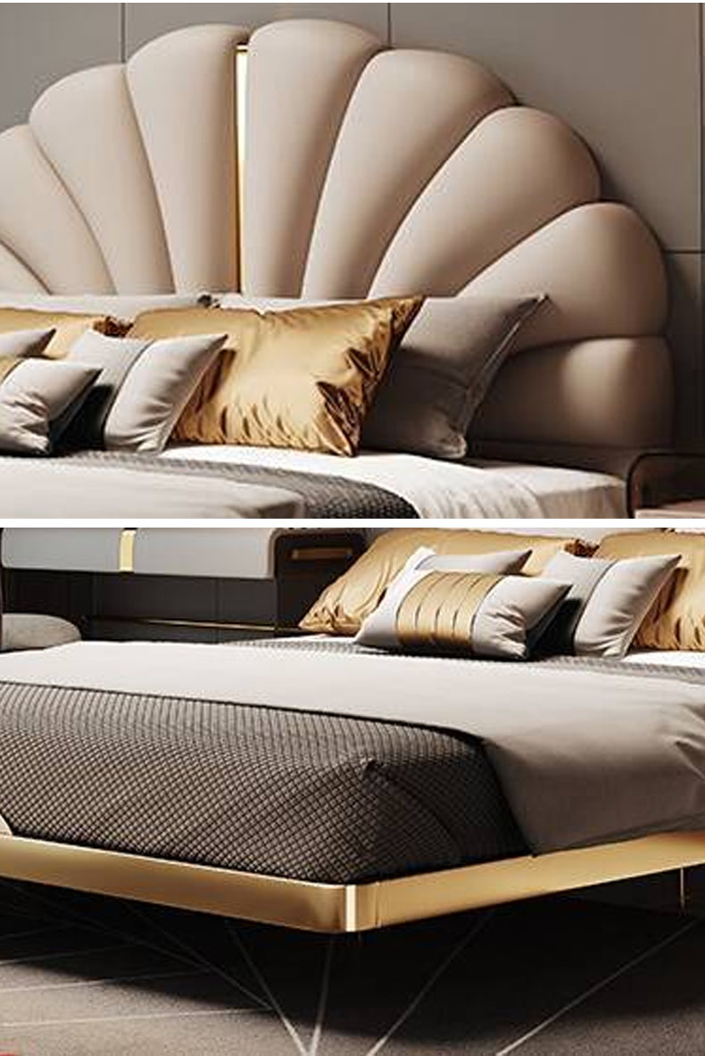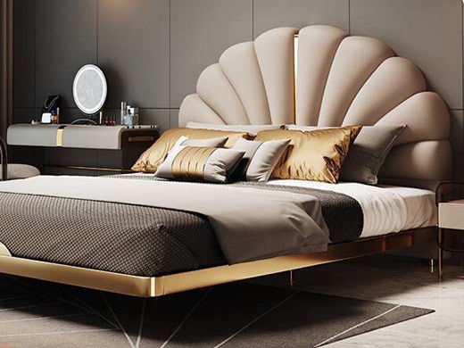 小红书系列 现代简约 实木框架+高回弹海绵+铜色不锈钢五金+仿真皮+仿皮 1.5米床