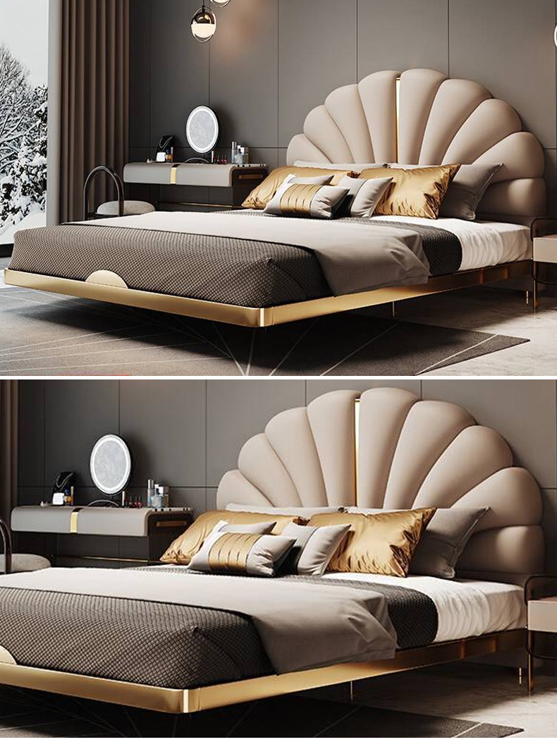 小红书系列 现代简约 实木框架+高回弹海绵+铜色不锈钢五金+仿真皮+仿皮 1.8米床