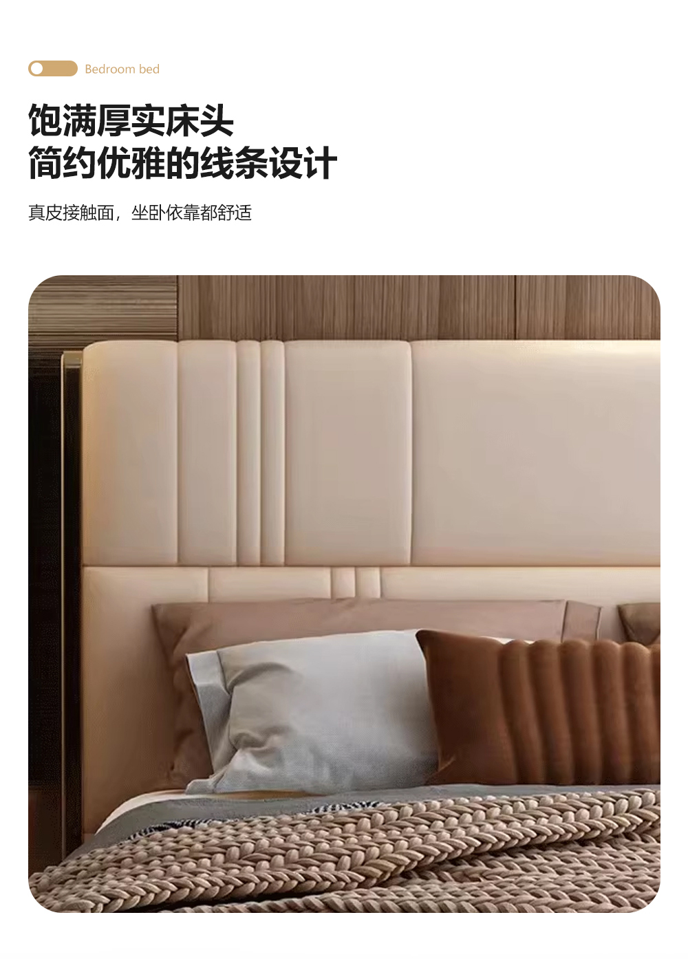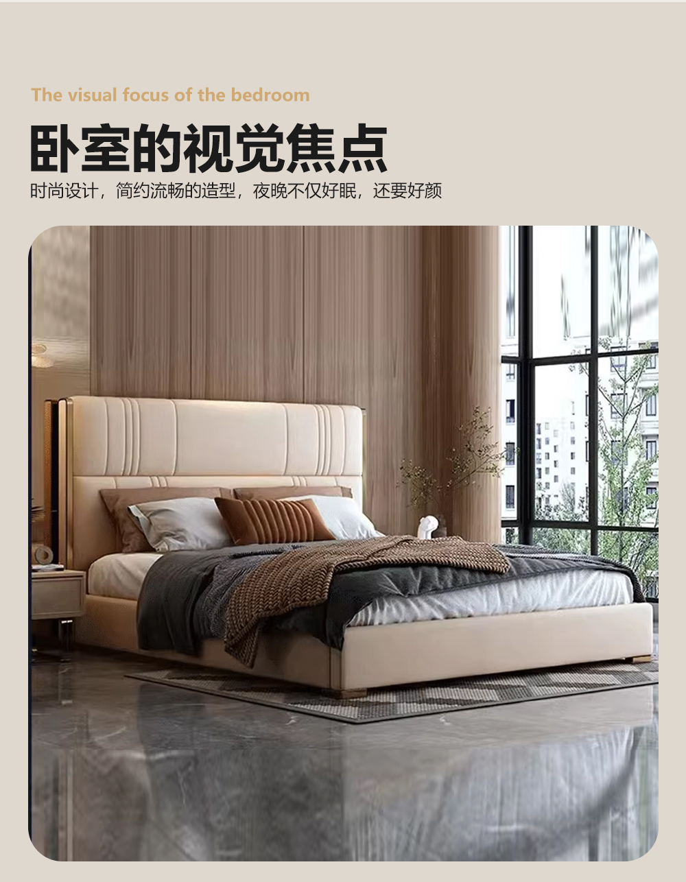 小红书系列 现代简约 实木框架+高回弹海绵+接触面头层牛皮+仿皮 1.8米床
