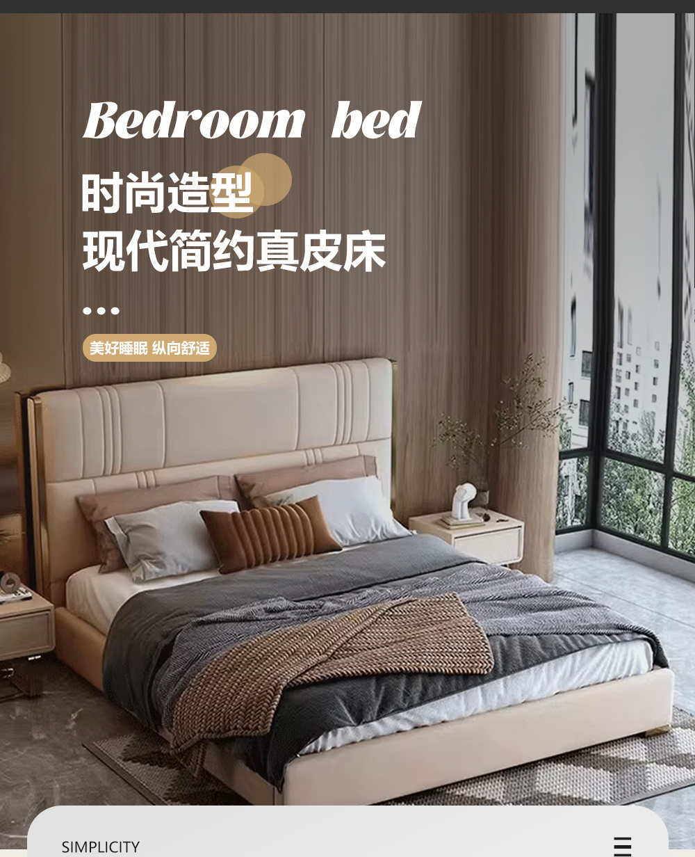小红书系列 现代简约 实木框架+高回弹海绵+接触面头层牛皮+仿皮 1.8米床¥21165