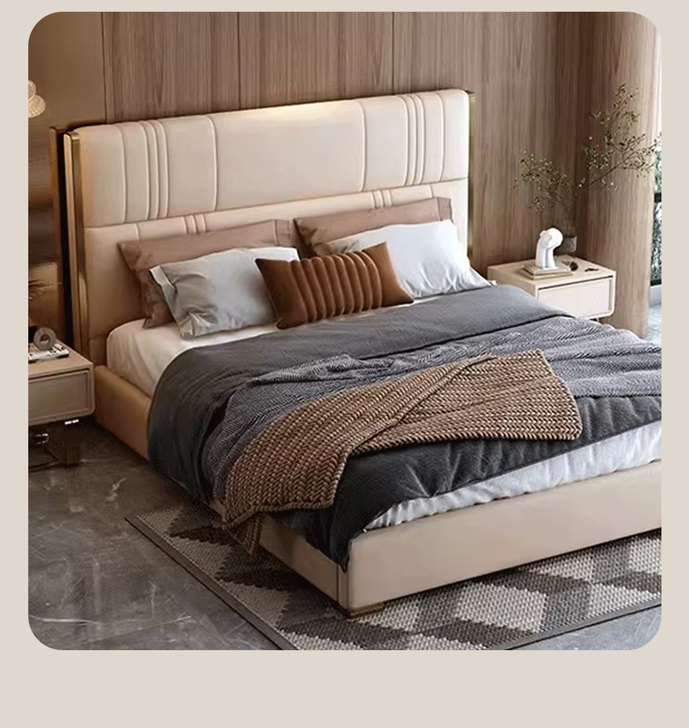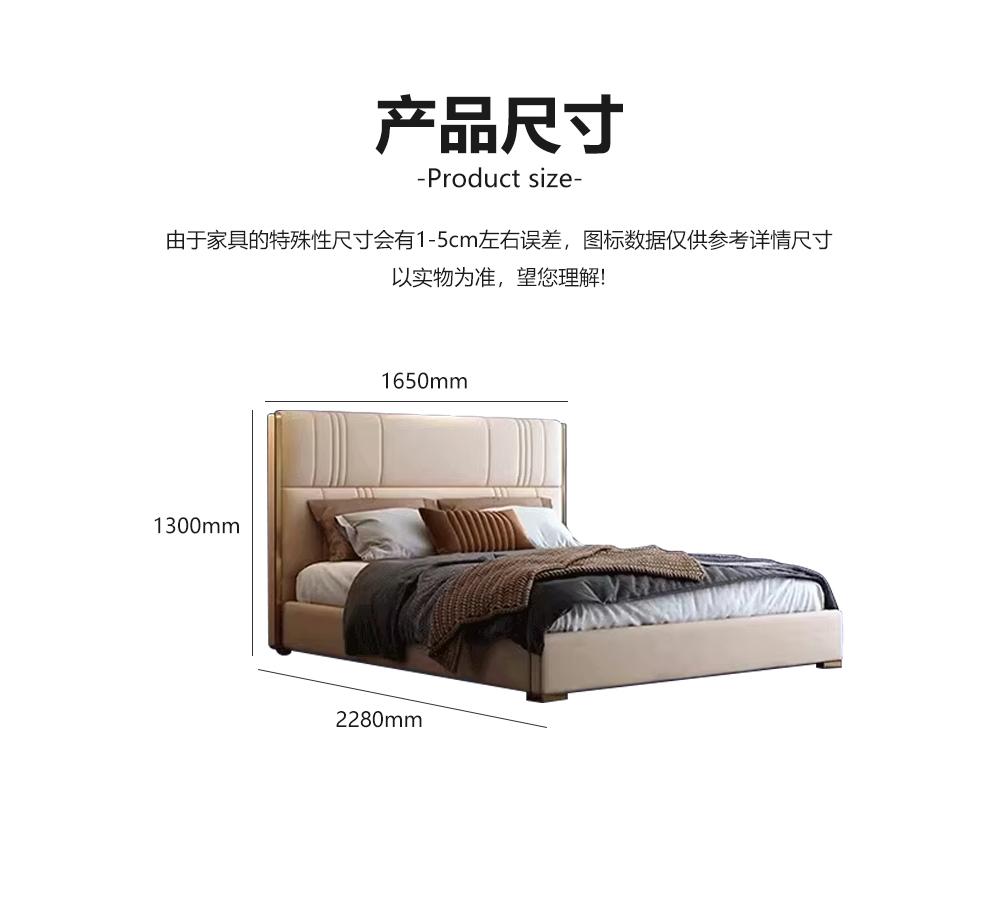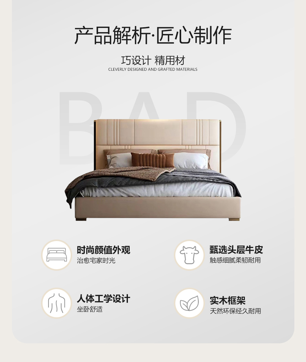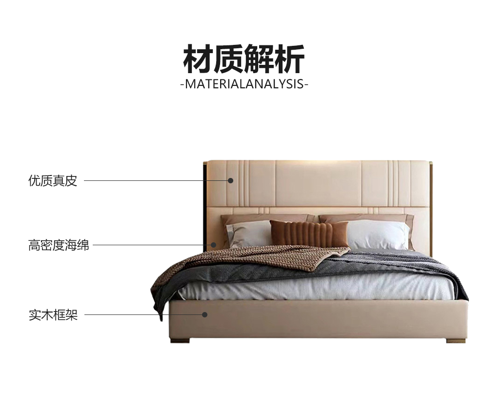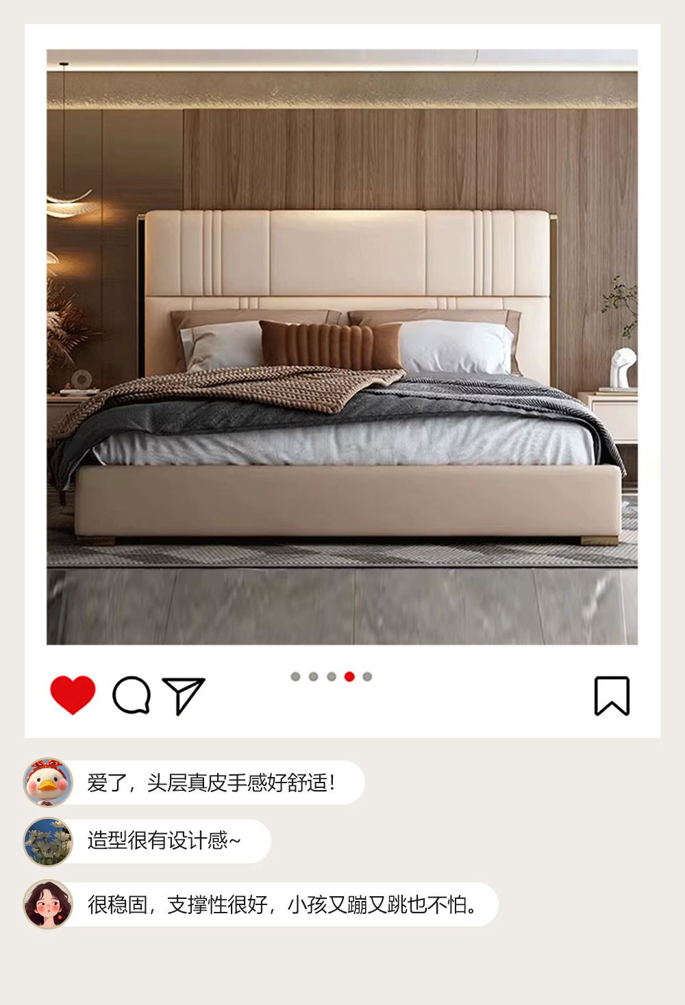 小红书系列 现代简约 实木框架+高回弹海绵+接触面头层牛皮 1.5米床