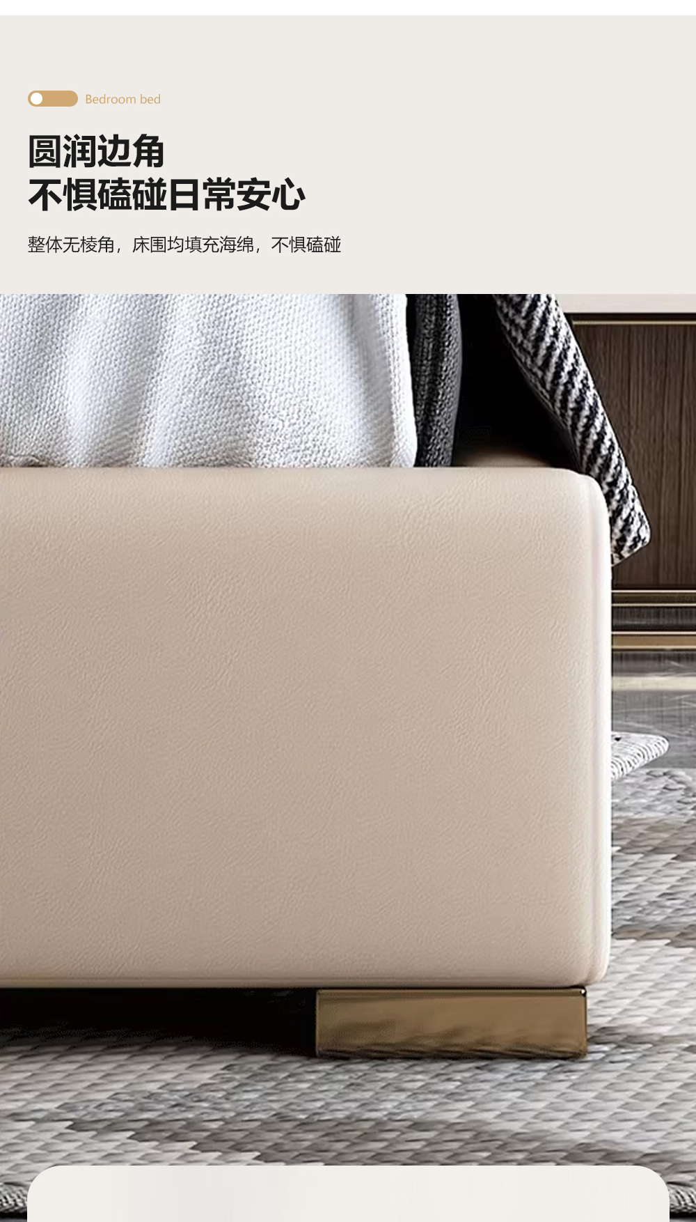 小红书系列 现代简约 实木框架+白蜡木床边+高回弹海绵+接触面头层牛皮+仿皮 1.8米床
