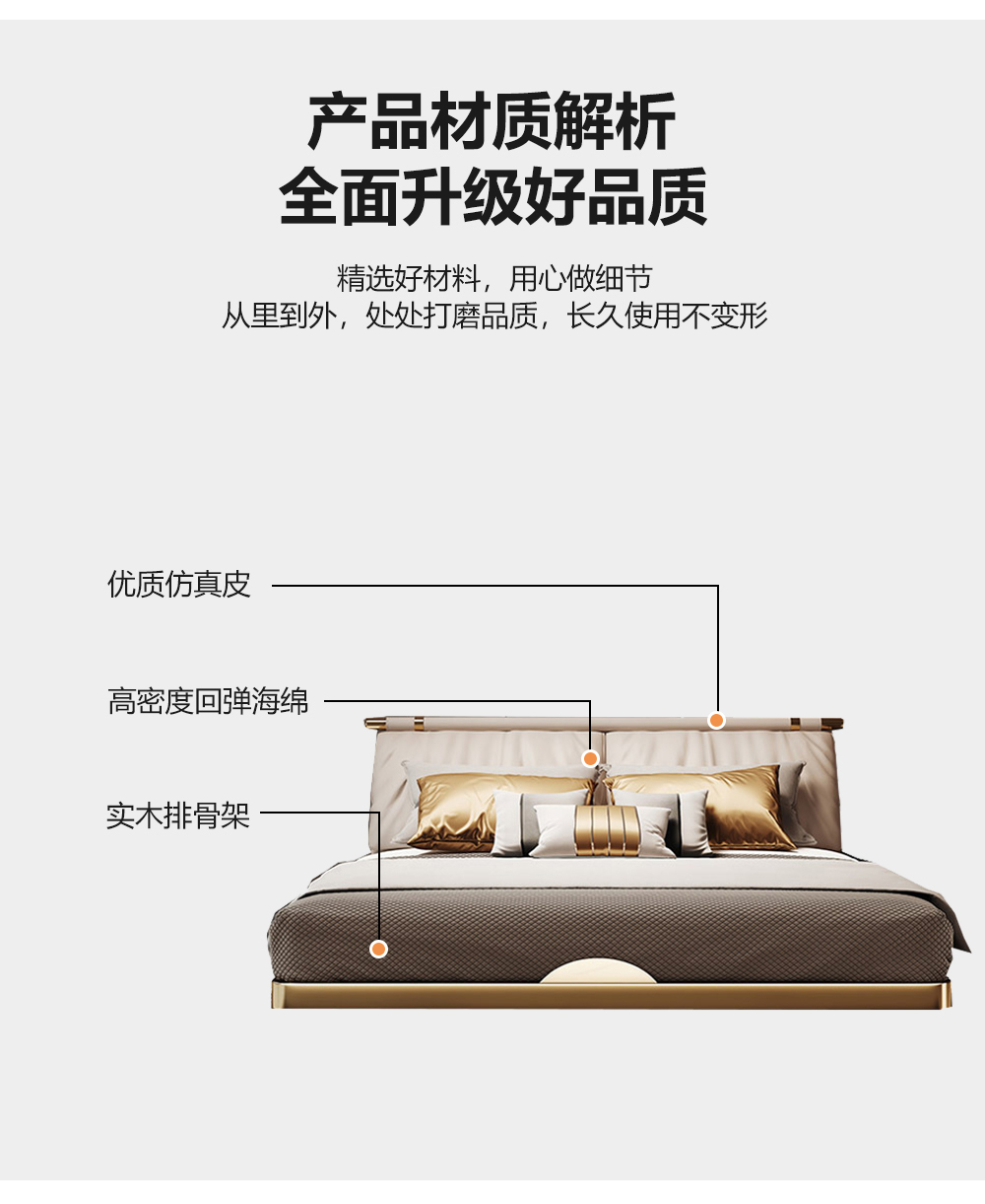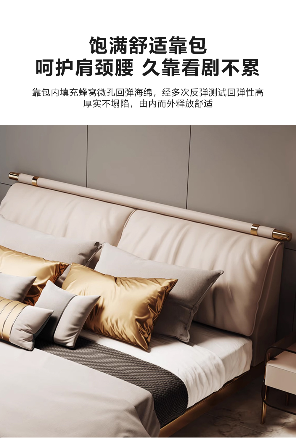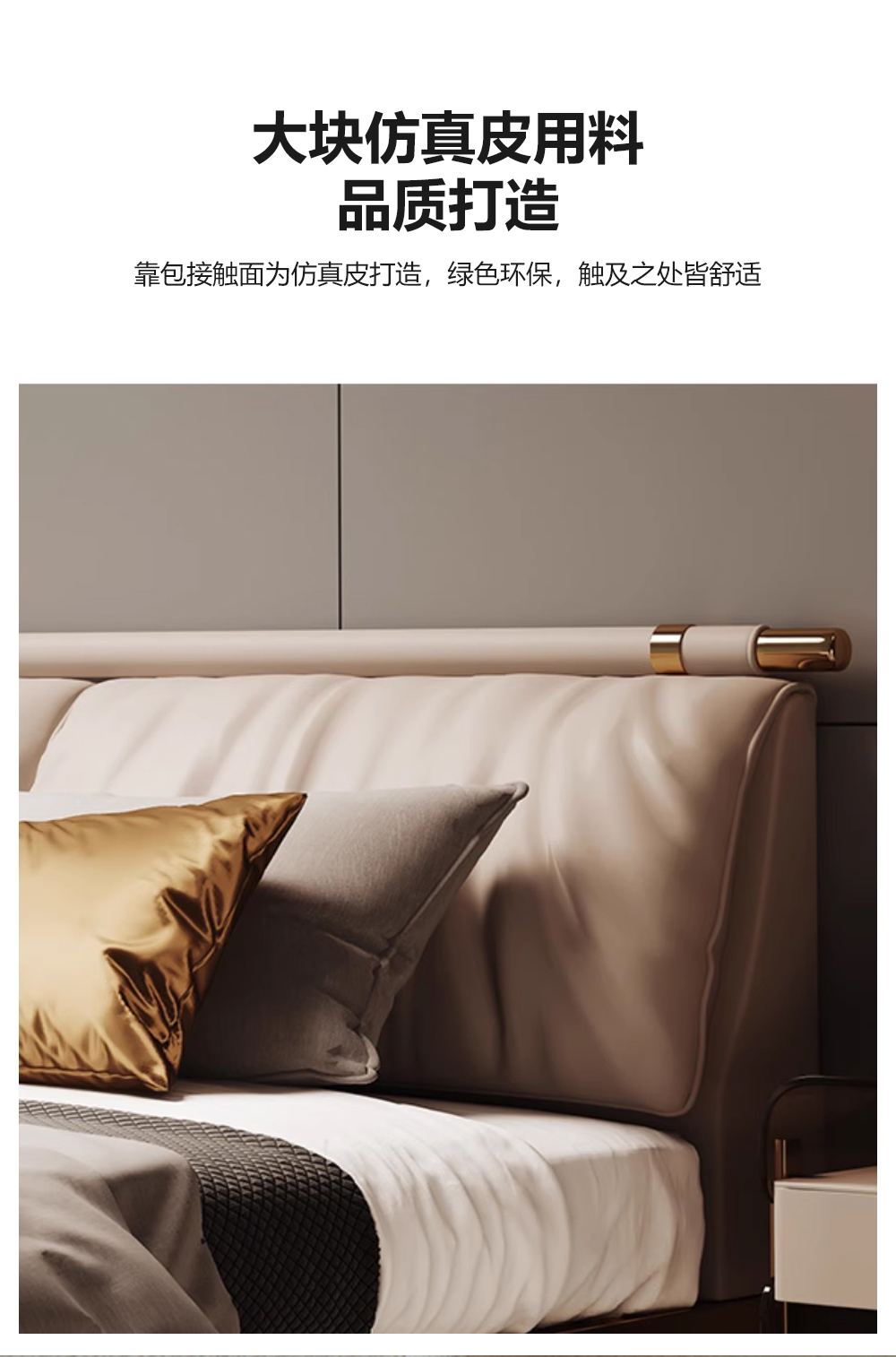 小红书系列 现代简约 实木框架+高回弹海绵+铜色不锈钢五金+仿真皮+仿皮 1.8米床