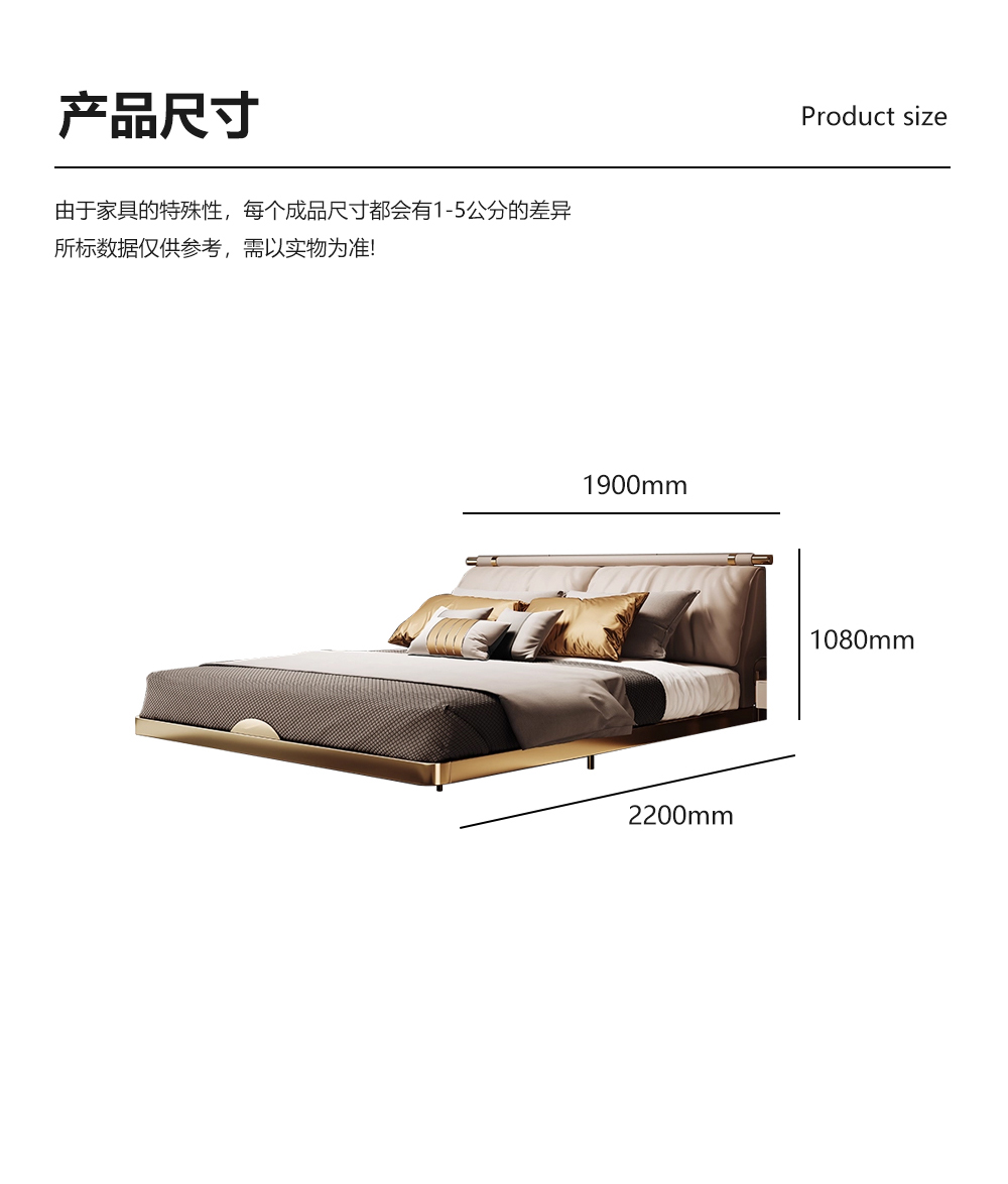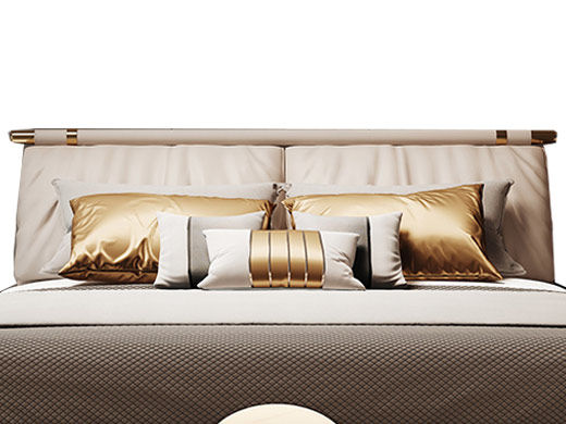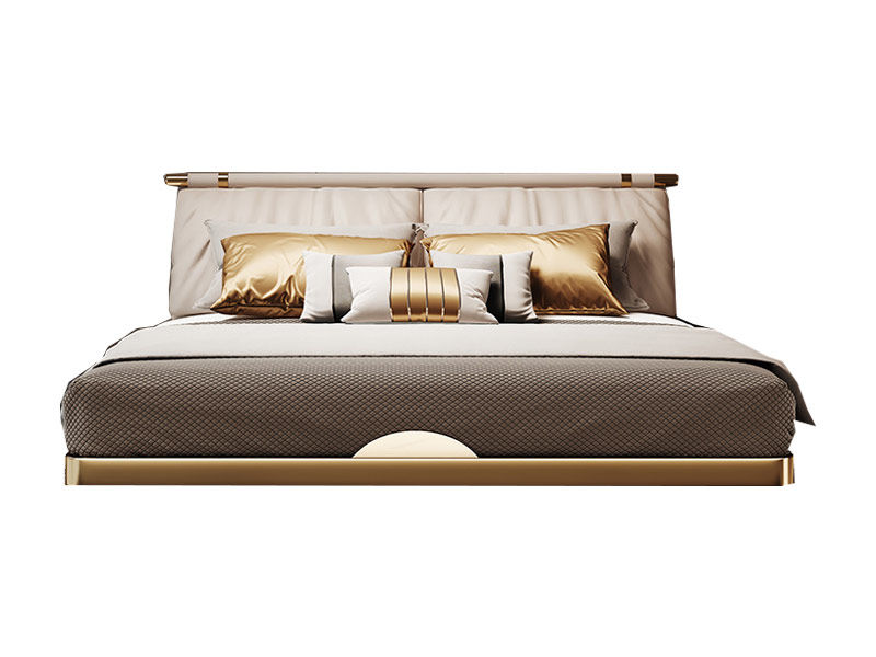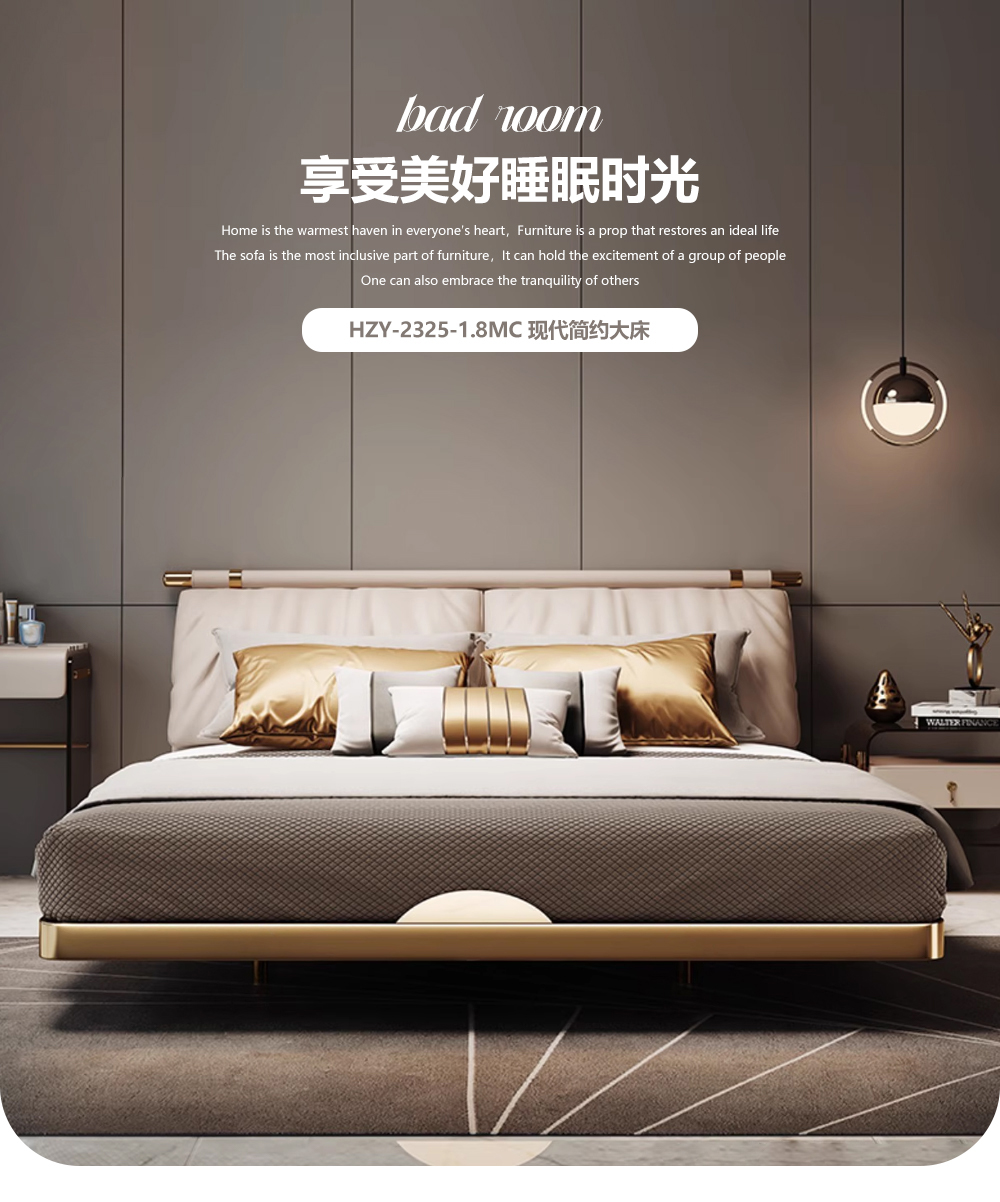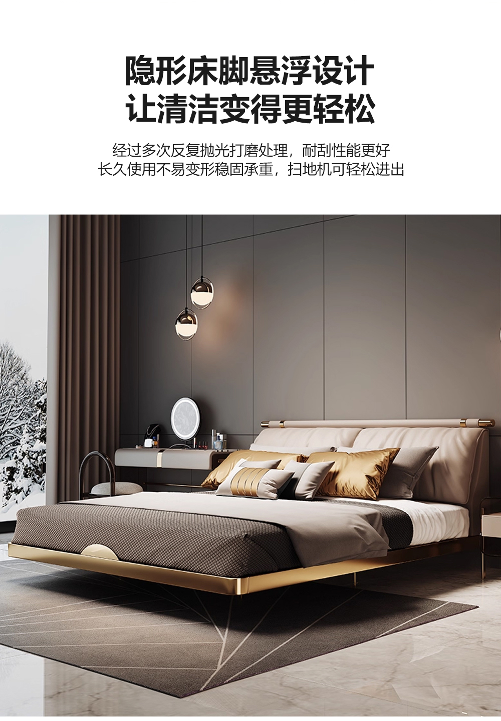 小红书系列 现代简约 实木框架+高回弹海绵+铜色不锈钢五金+仿真皮+仿皮 1.8米床