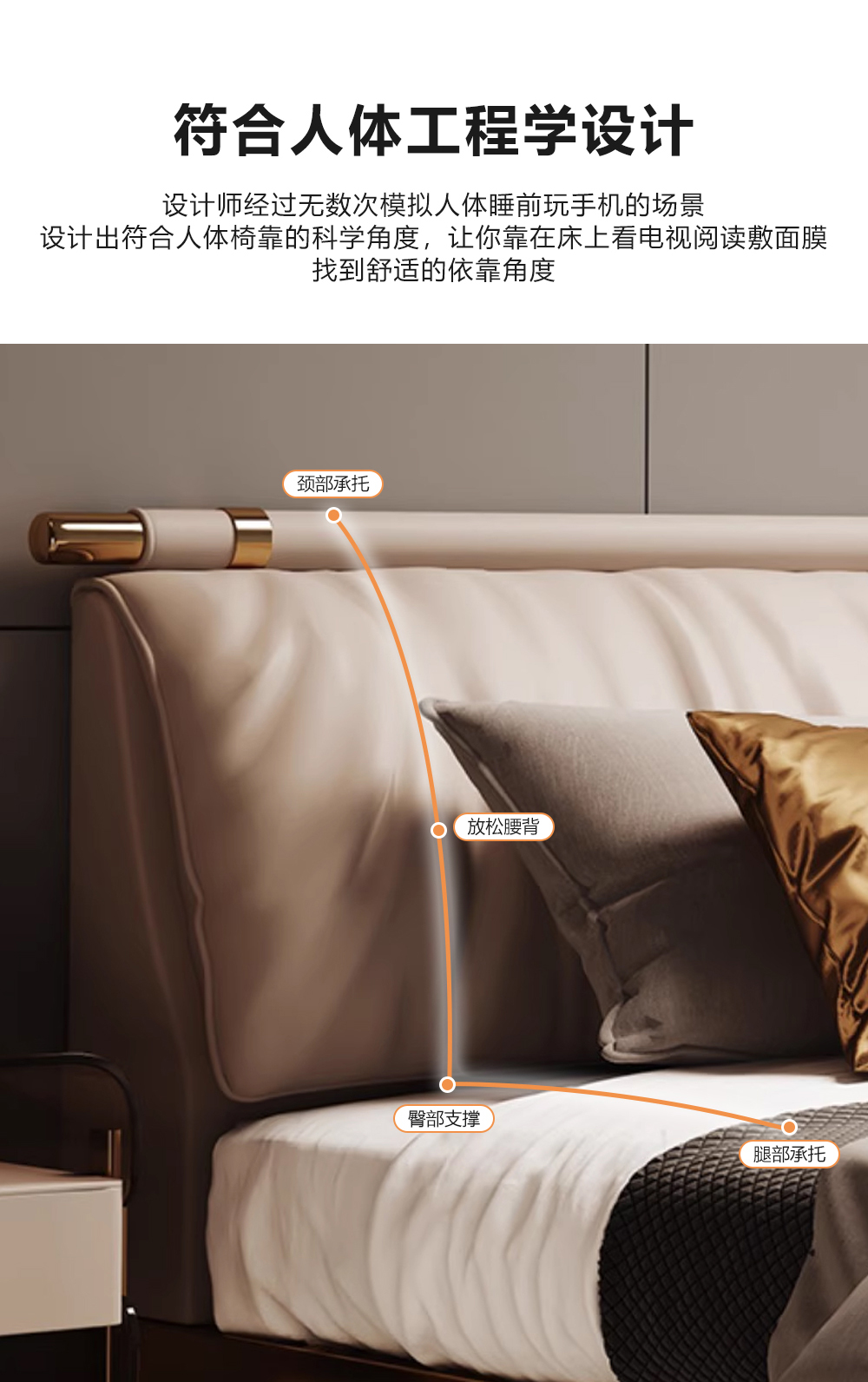 小红书系列 现代简约 实木框架+高回弹海绵+接触面头层牛皮 1.8米床¥6291