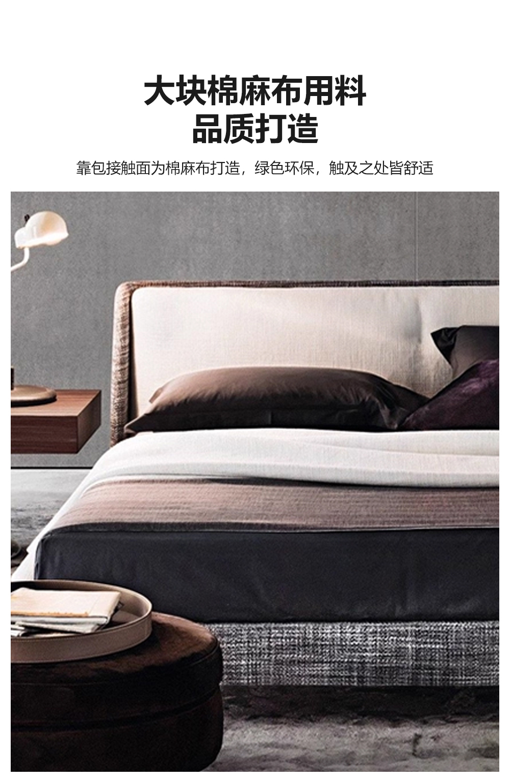 小红书系列 现代简约 实木框架+高回弹海绵+高档棉麻面料 1.8米床