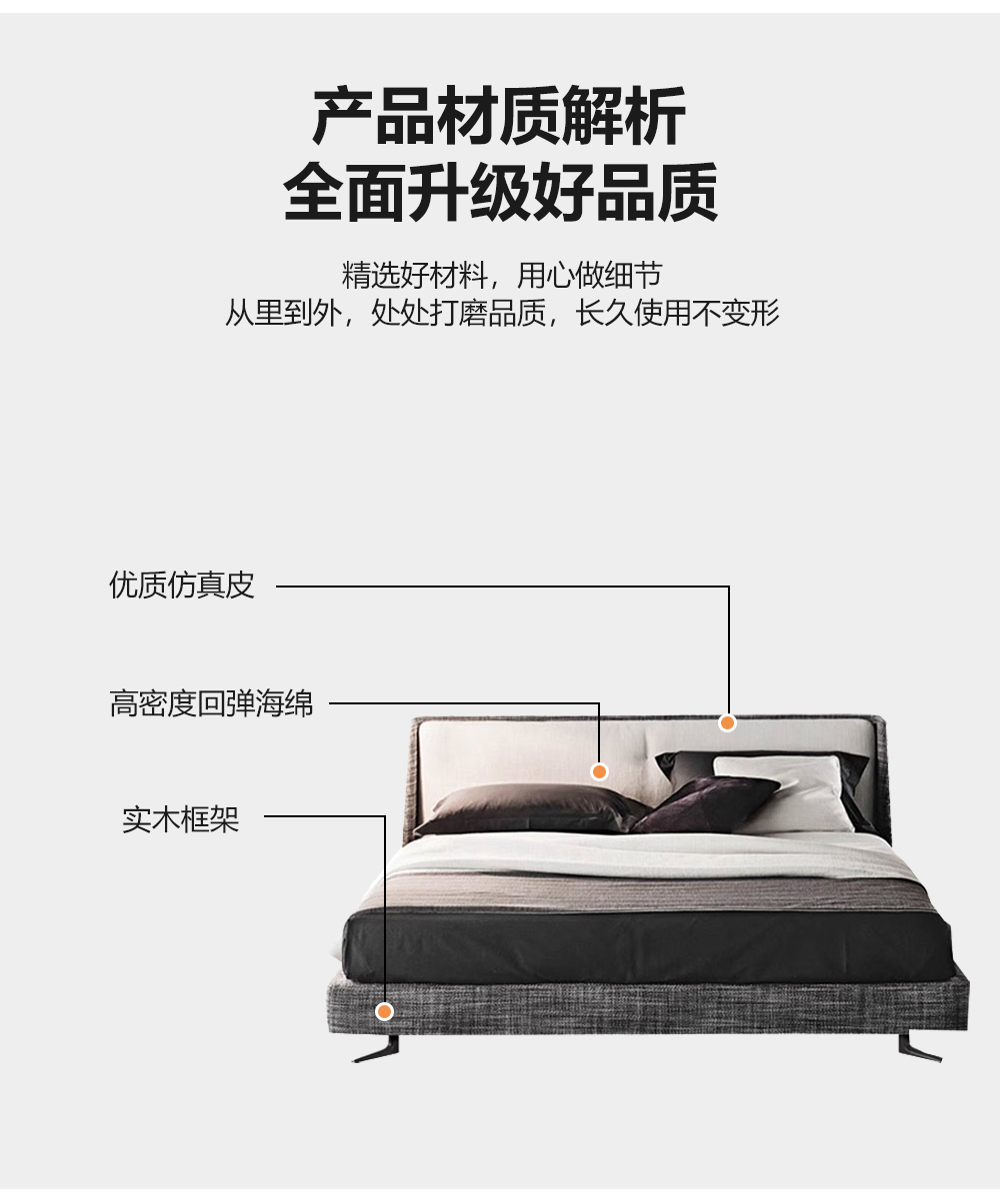 小红书系列 现代简约 实木框架+高回弹海绵+高档磨砂布面料 1.8米床¥7266