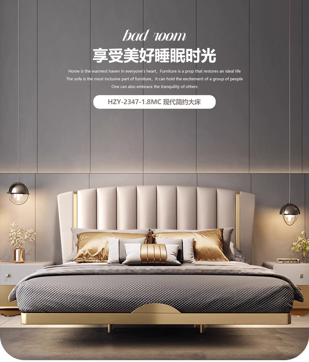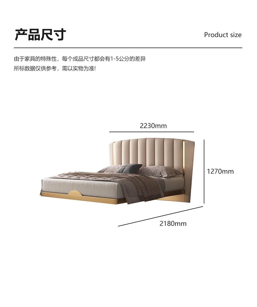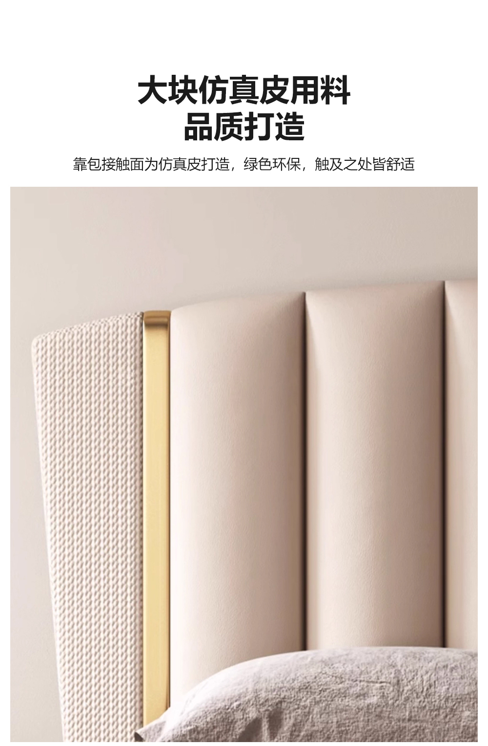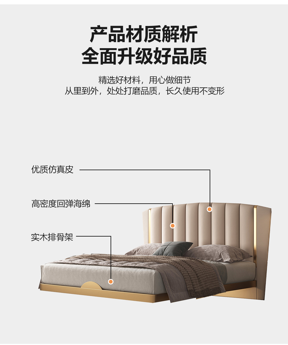 小红书系列 现代简约 实木框架+高回弹海绵+铜色不锈钢五金+仿真皮+仿皮 1.8米床