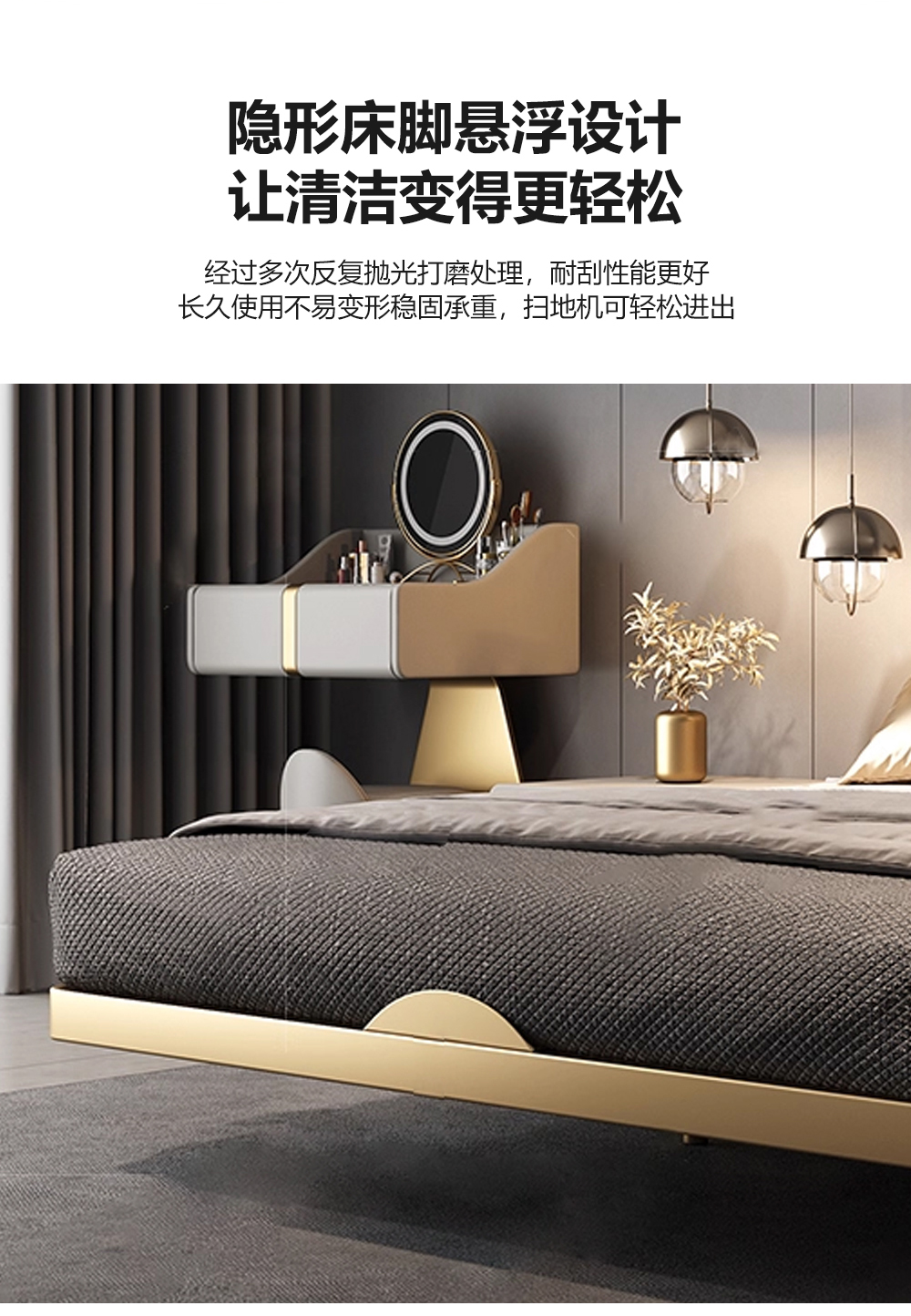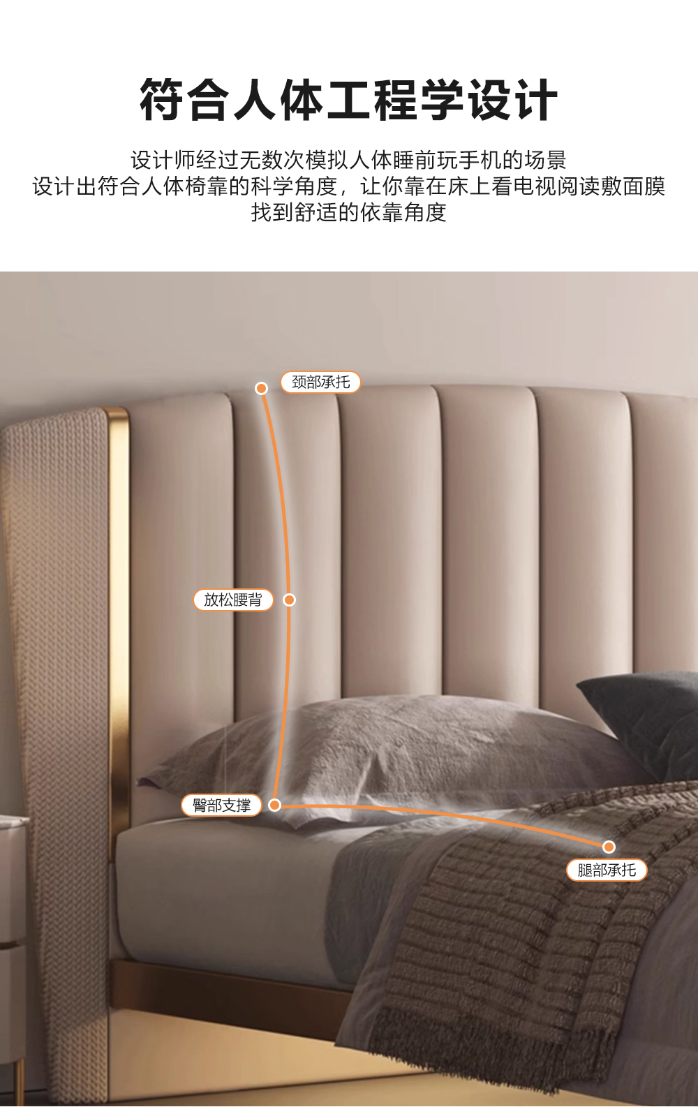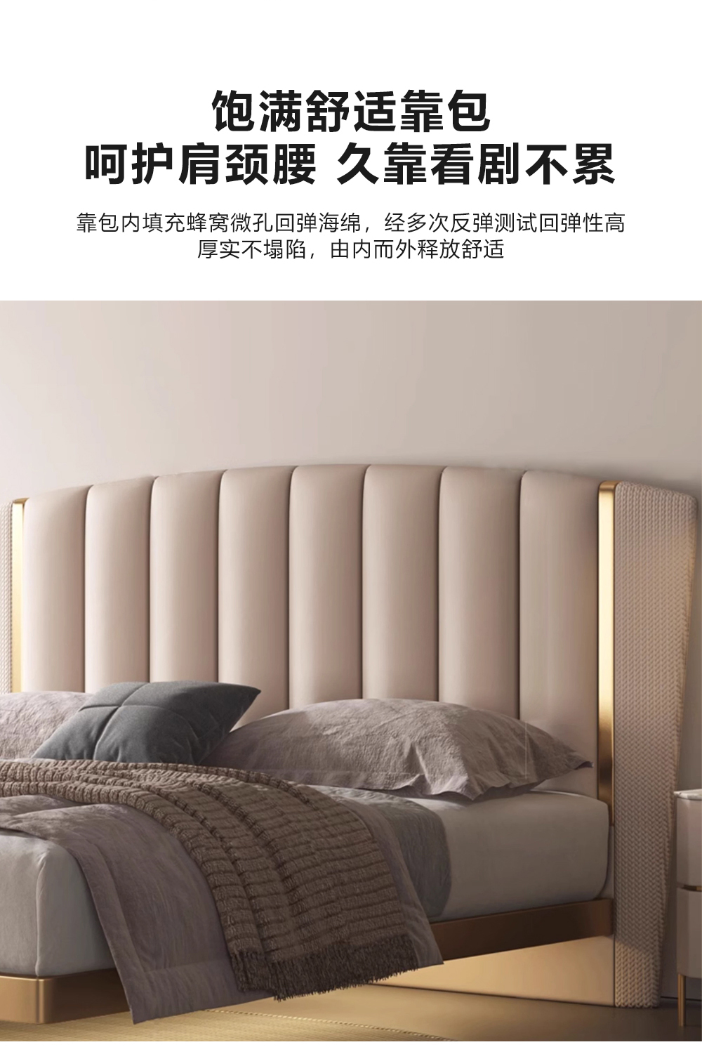 小红书系列 现代简约 实木框架+高回弹海绵+铜色不锈钢五金+仿真皮+仿皮 1.8米床