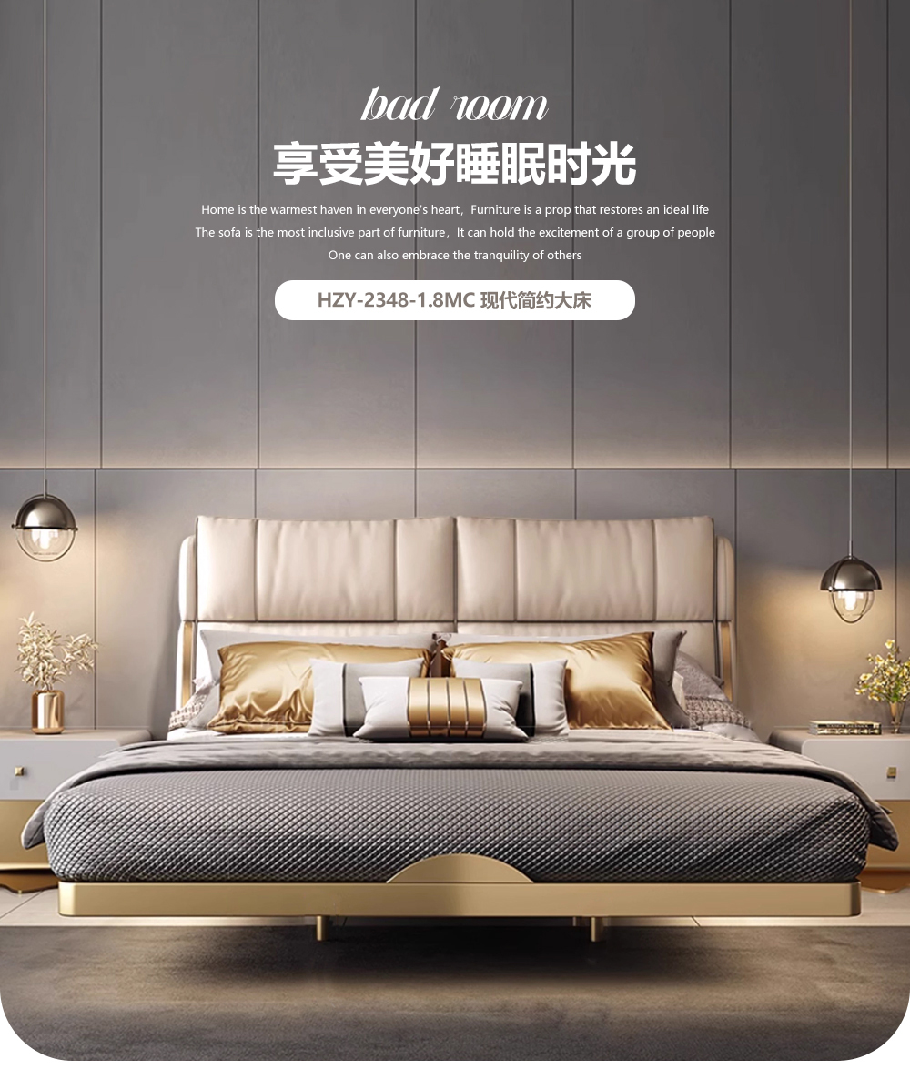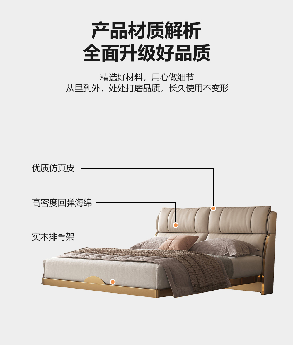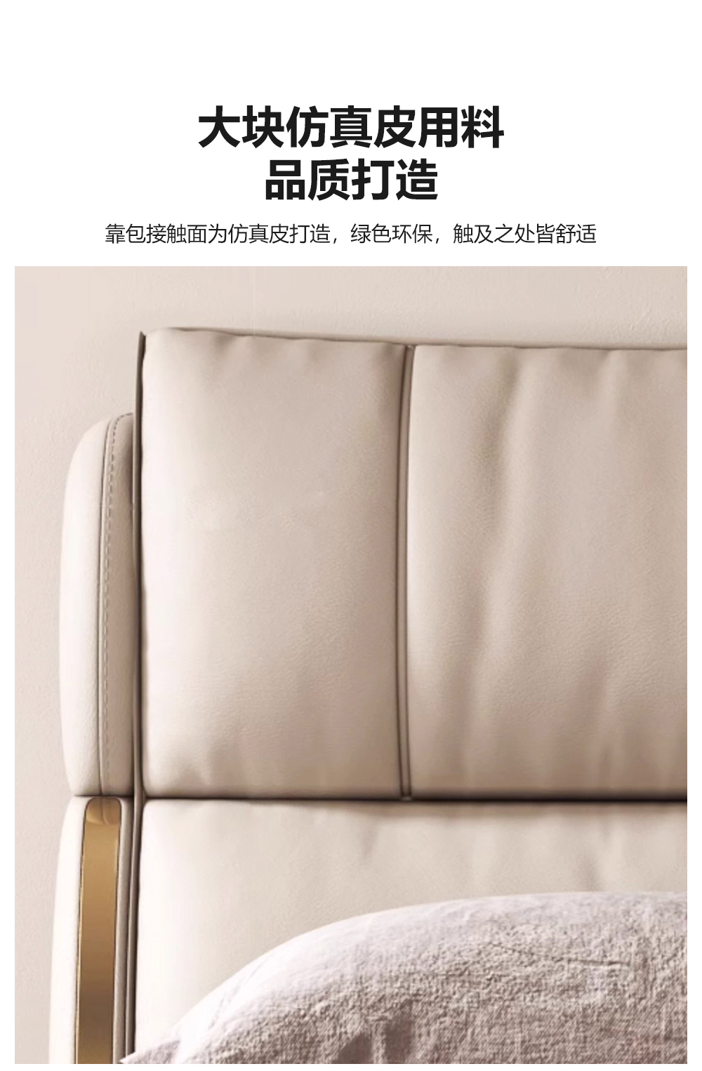 小红书系列 现代简约 实木框架+高回弹海绵+铜色不锈钢五金+仿真皮+仿皮 1.8米床