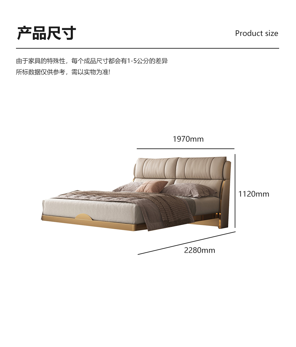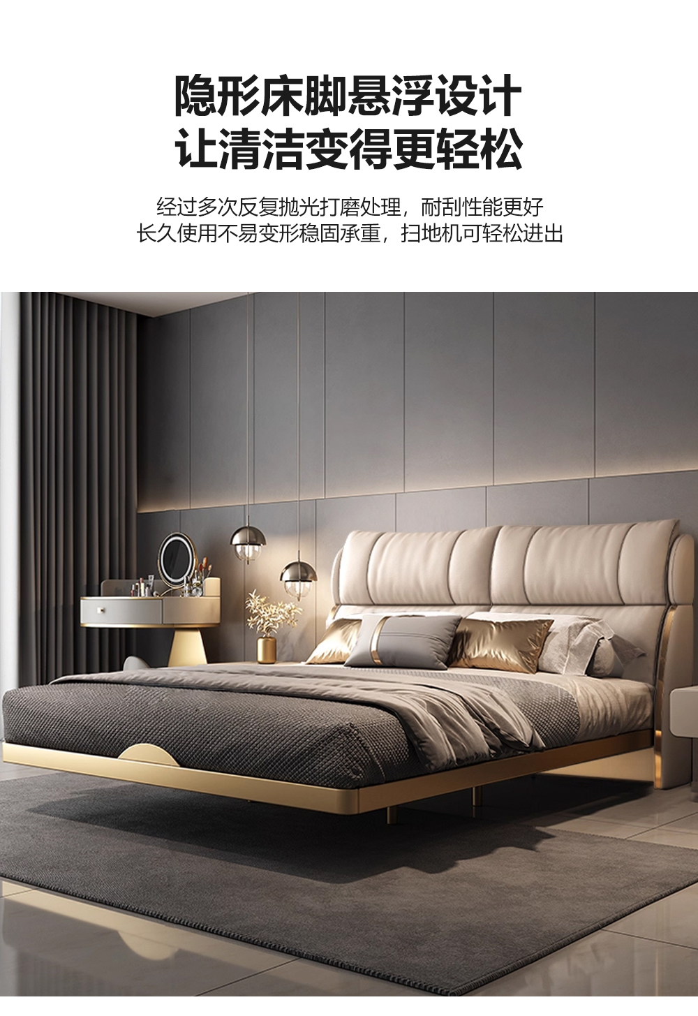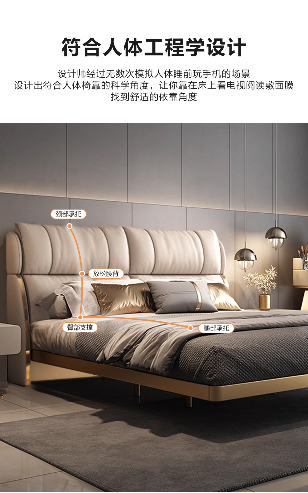 小红书系列 现代简约 实木框架+高回弹海绵+铜色不锈钢五金+仿真皮+仿皮 1.8米床