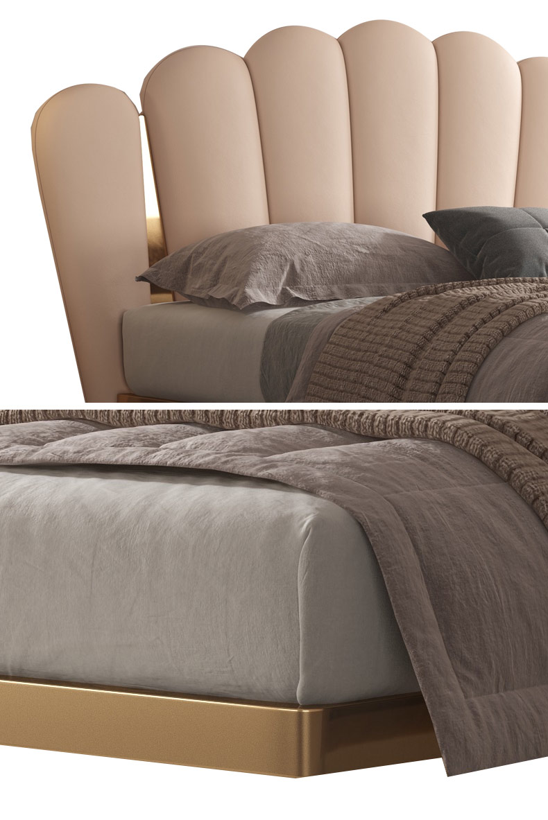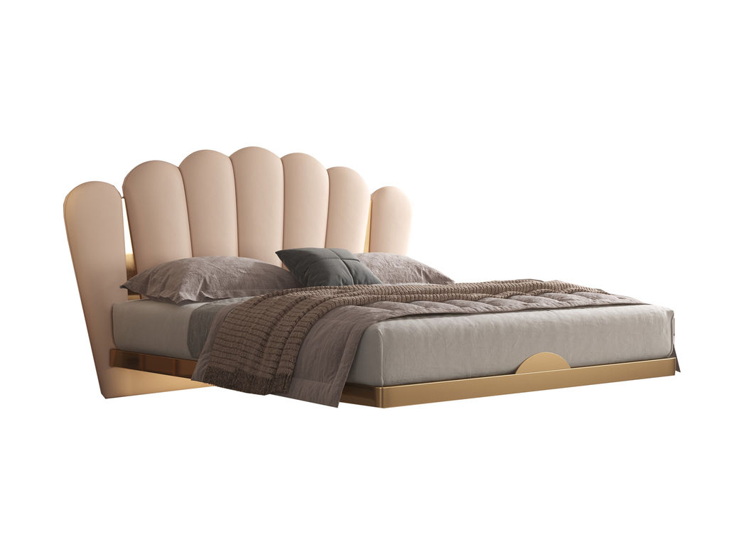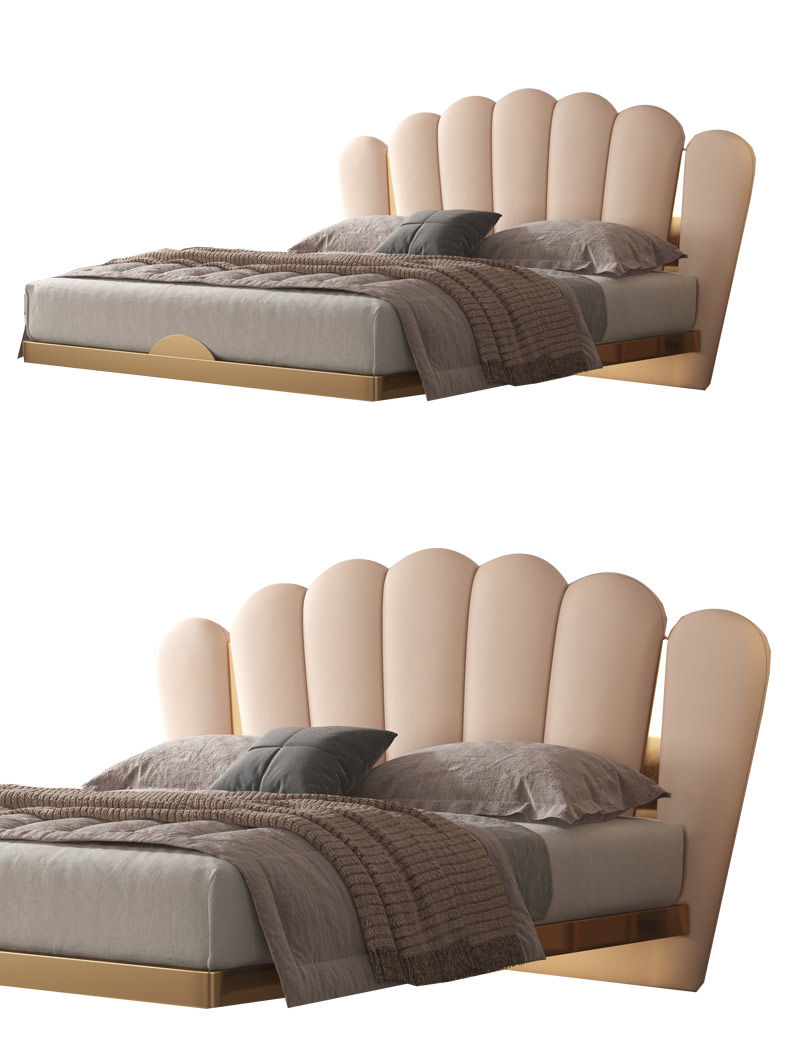 小红书系列 现代简约 实木框架+高回弹海绵+铜色不锈钢五金+仿真皮+仿皮 1.8米床