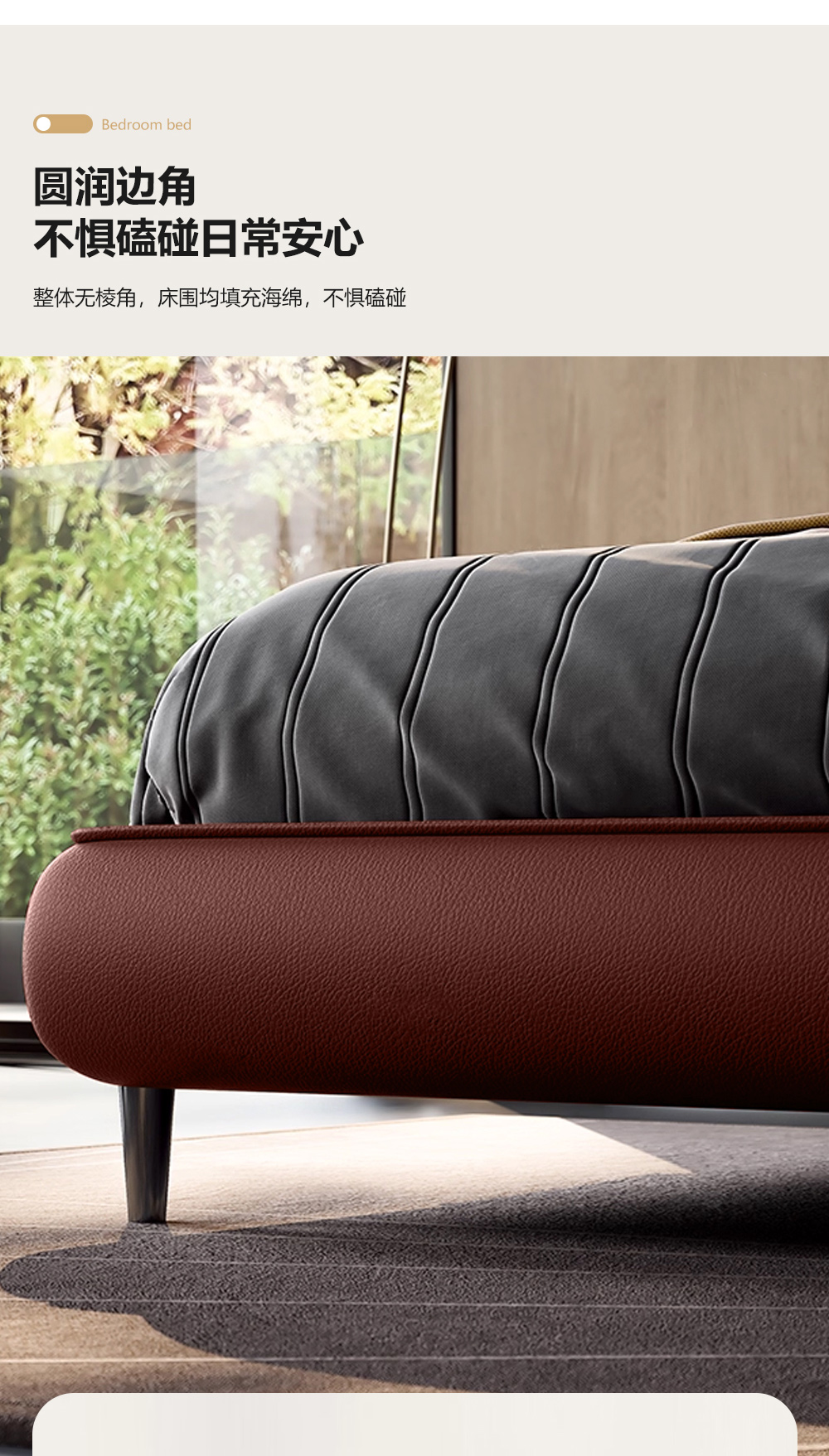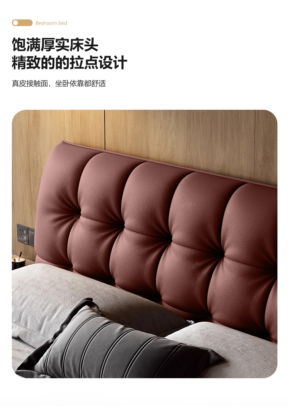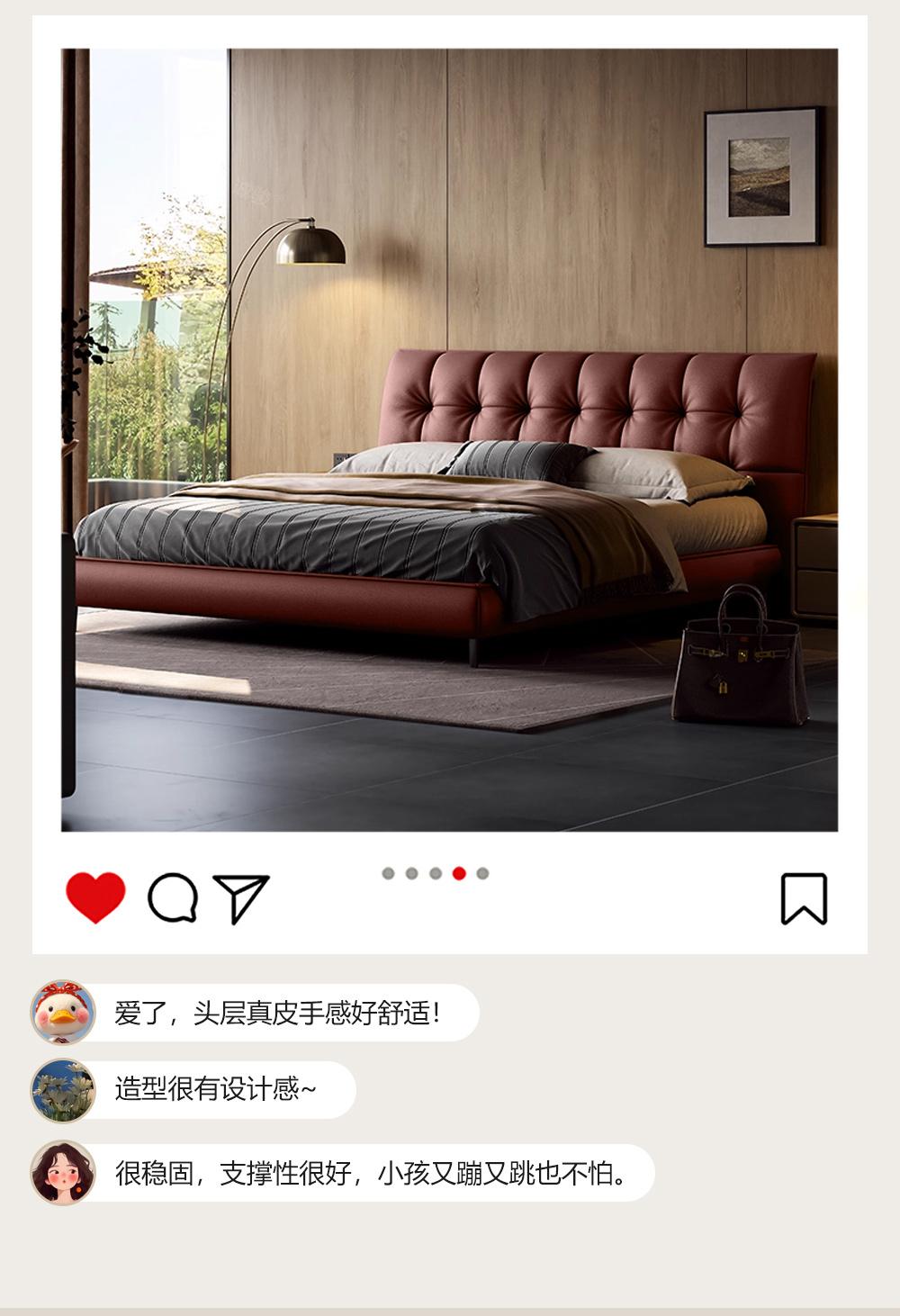 小红书系列 现代简约 实木框架+高回弹海绵+接触面头层牛皮 1.8米床¥4389