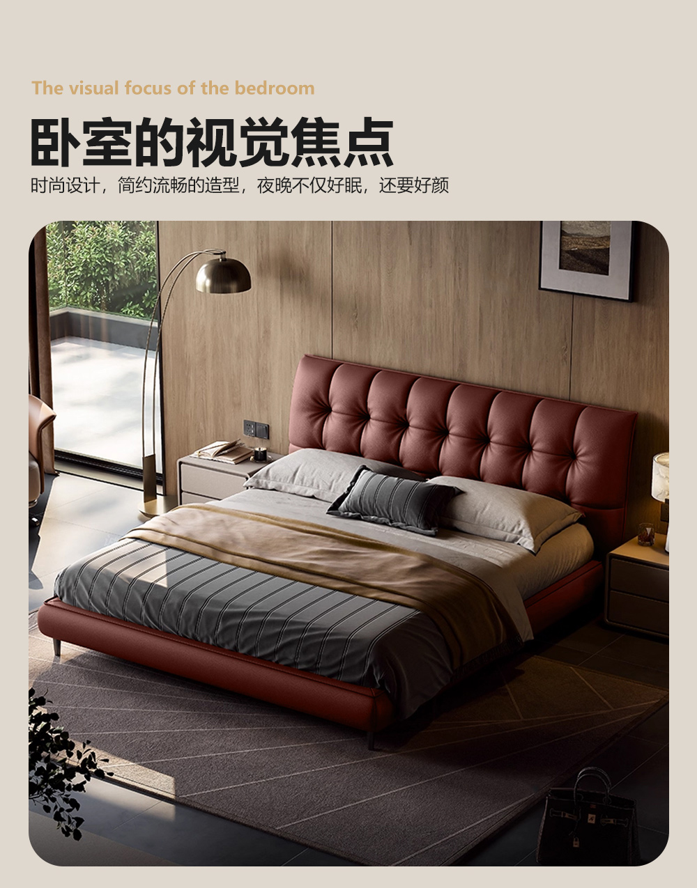 小红书系列 现代简约 实木框架+高回弹海绵+接触面头层牛皮+仿皮 1.8米床¥21165