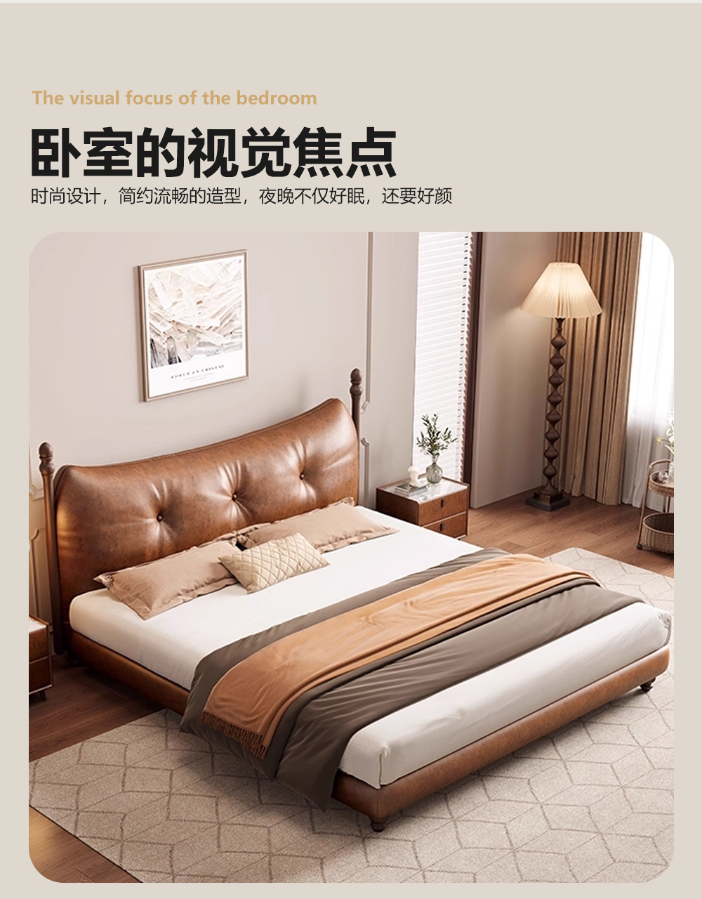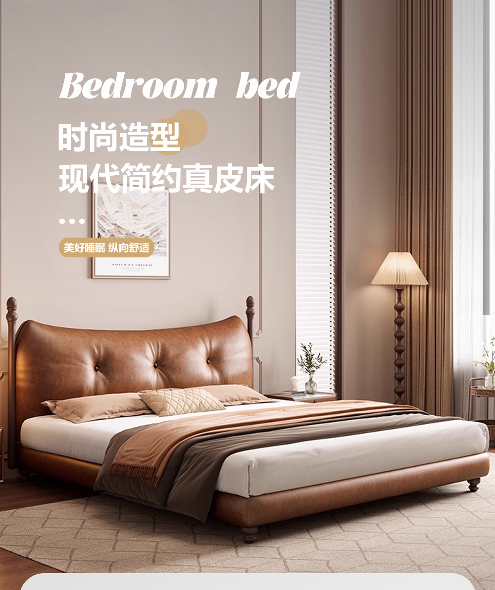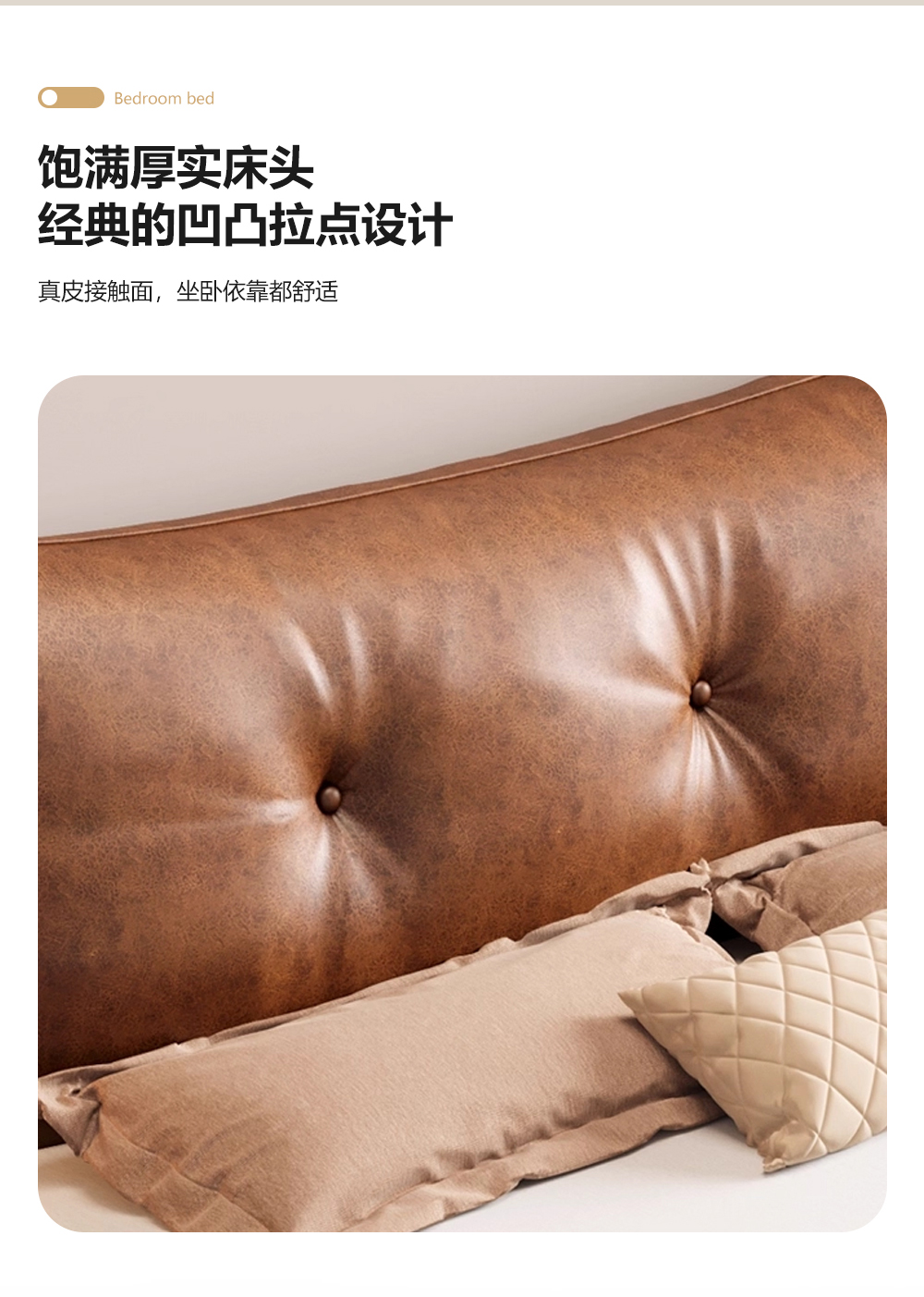 小红书系列 现代简约 实木框架+高回弹海绵+接触面头层牛皮 1.5米床