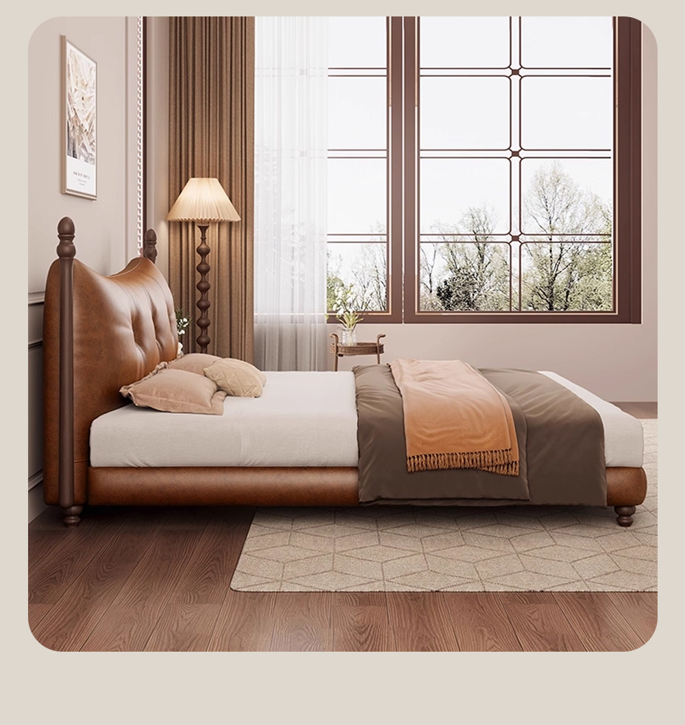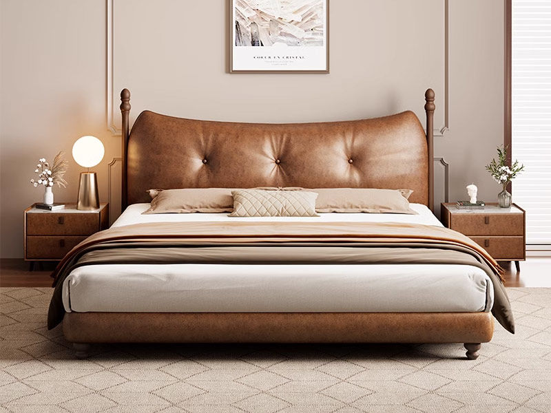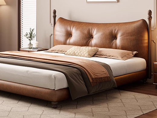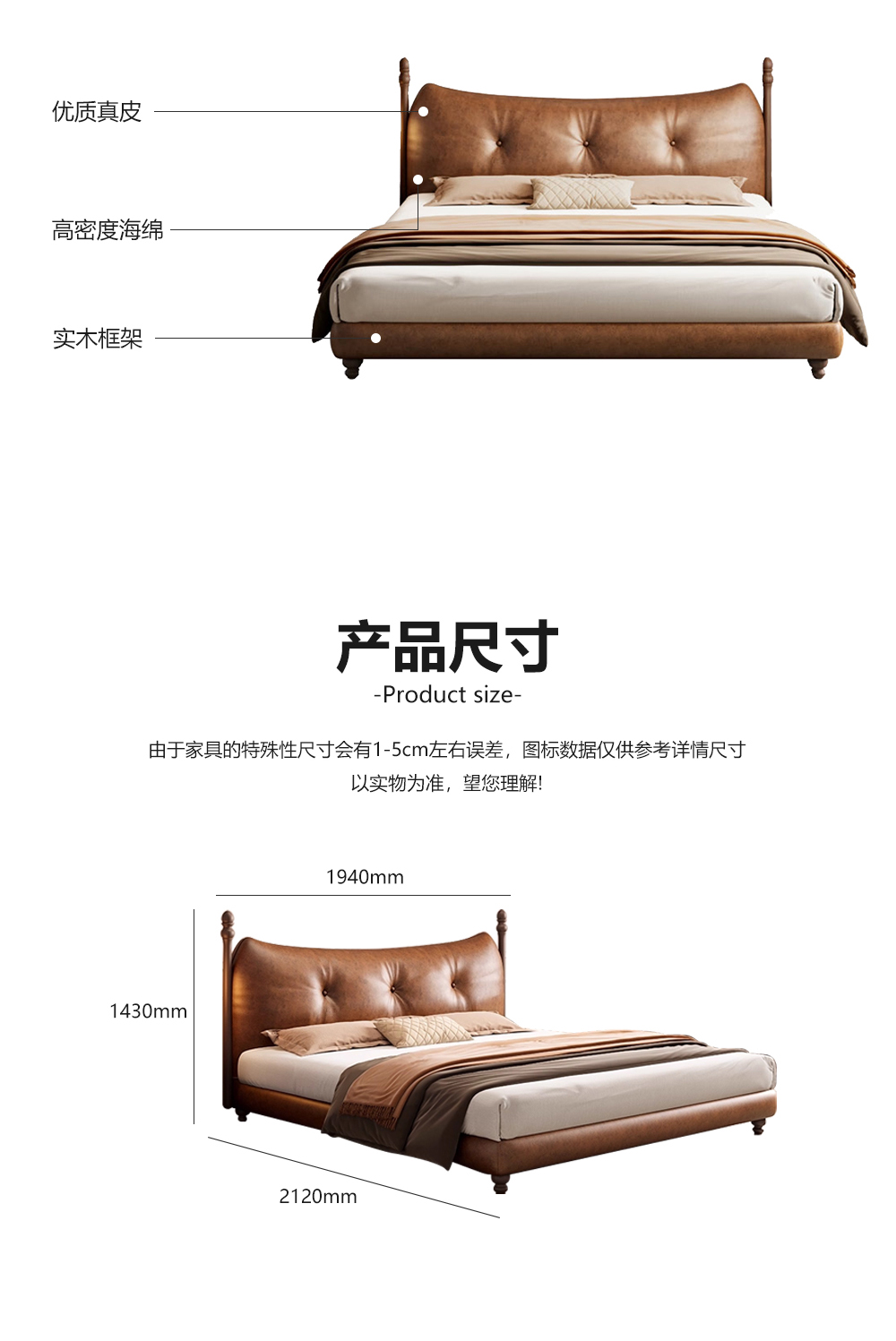 小红书系列 现代简约 实木框架+高回弹海绵+接触面头层牛皮 1.5米床
