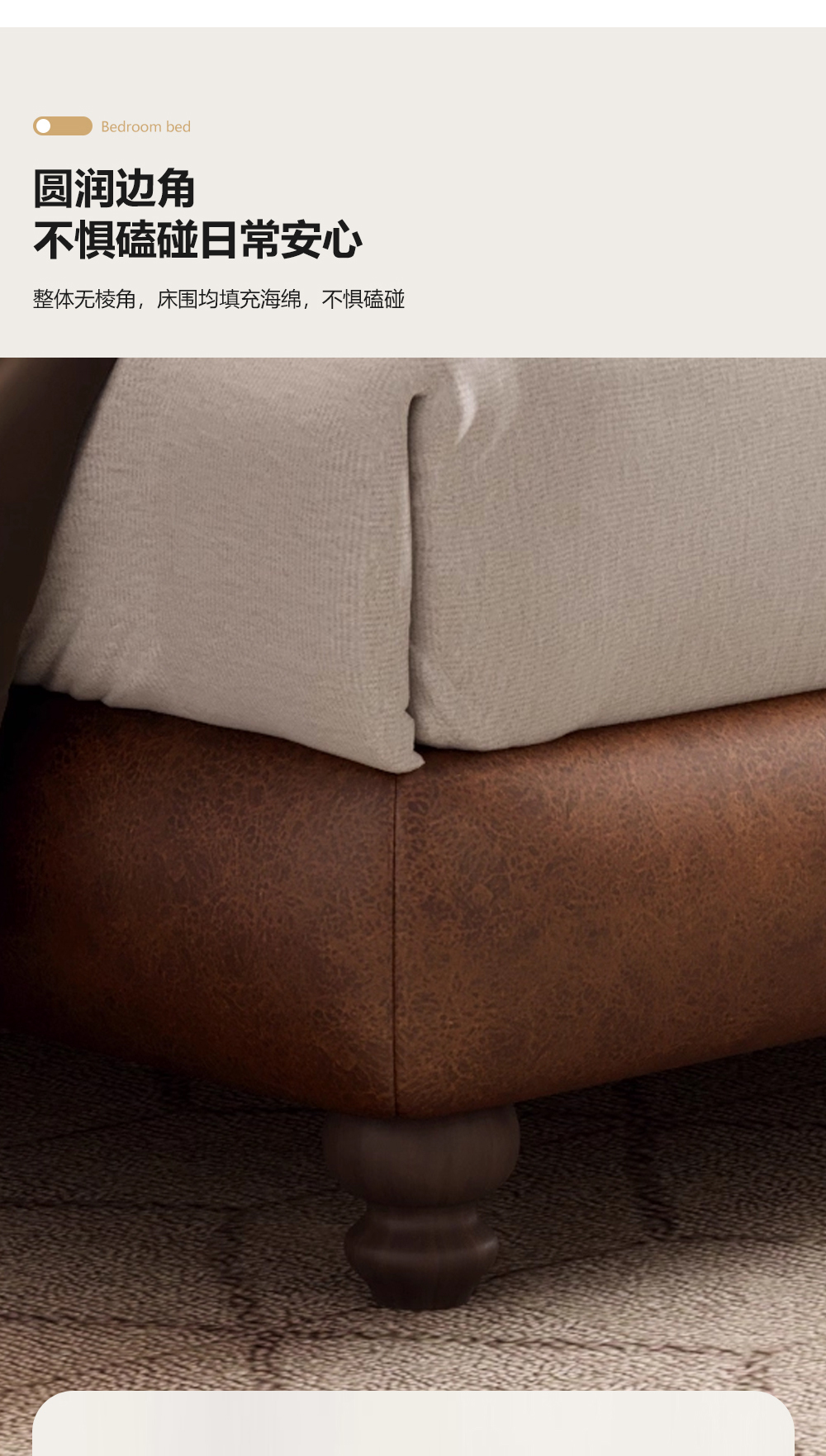 小红书系列 现代简约 实木框架+高回弹海绵+接触面头层牛皮+仿皮 1.8米床¥21165