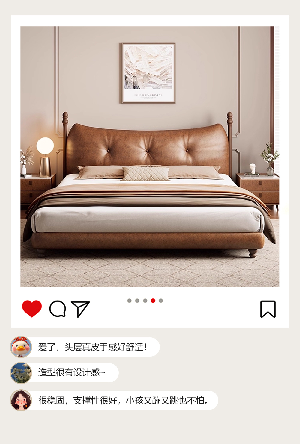 小红书系列 现代简约 实木框架+高回弹海绵+接触面头层牛皮 1.8米床¥4389