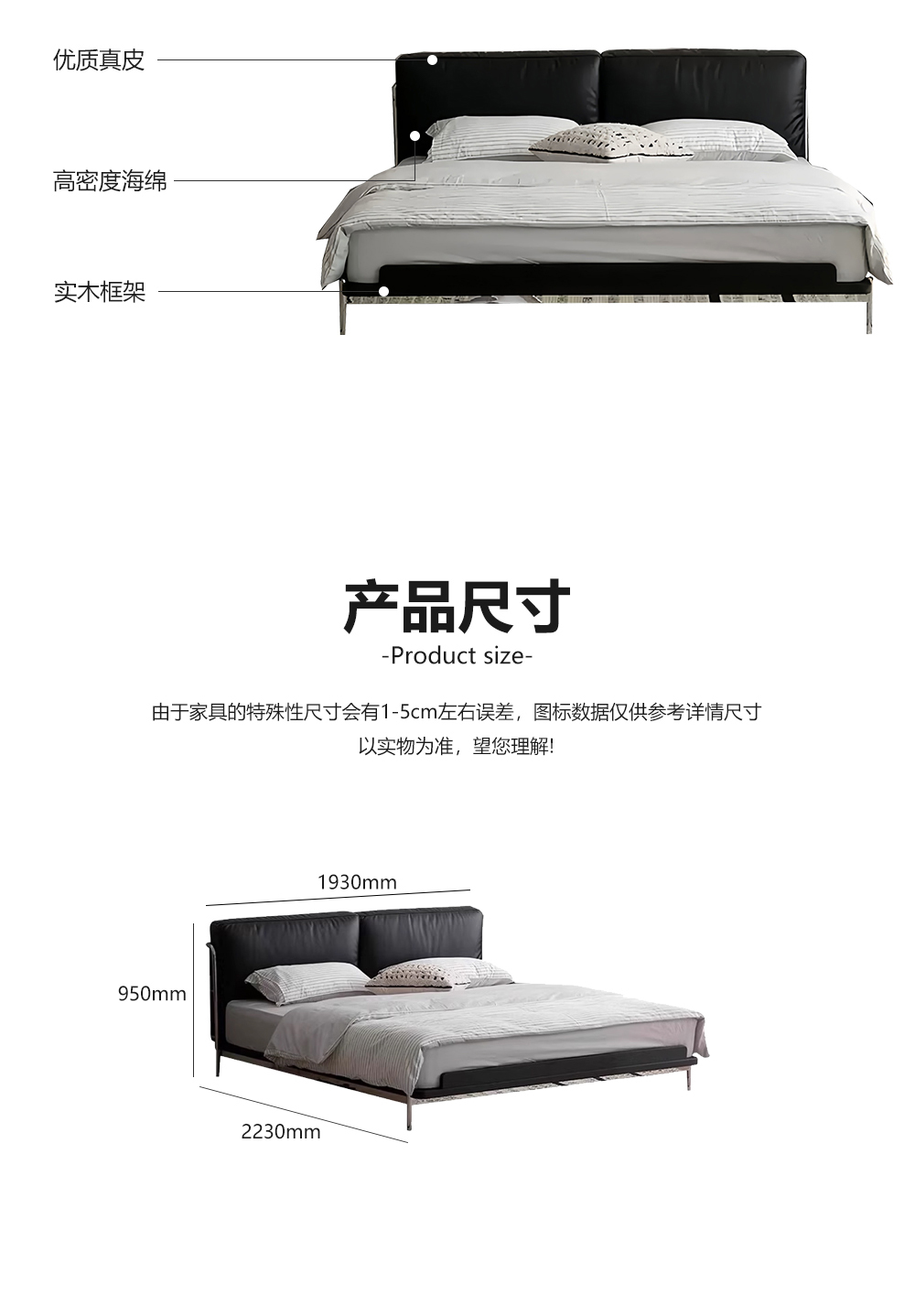 小红书系列 现代简约 实木框架+高回弹海绵+接触面头层牛皮 1.5米床