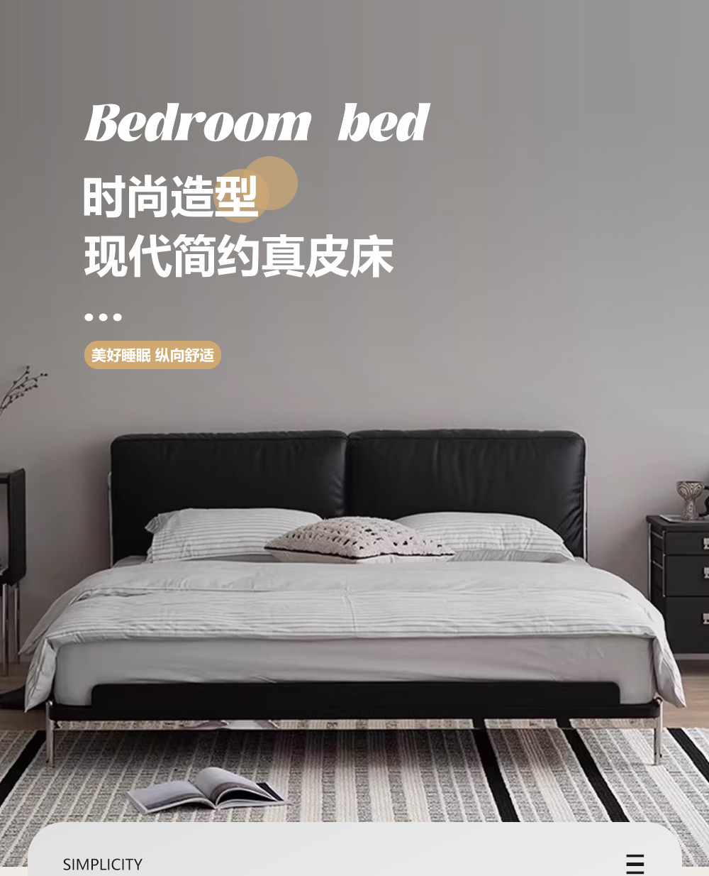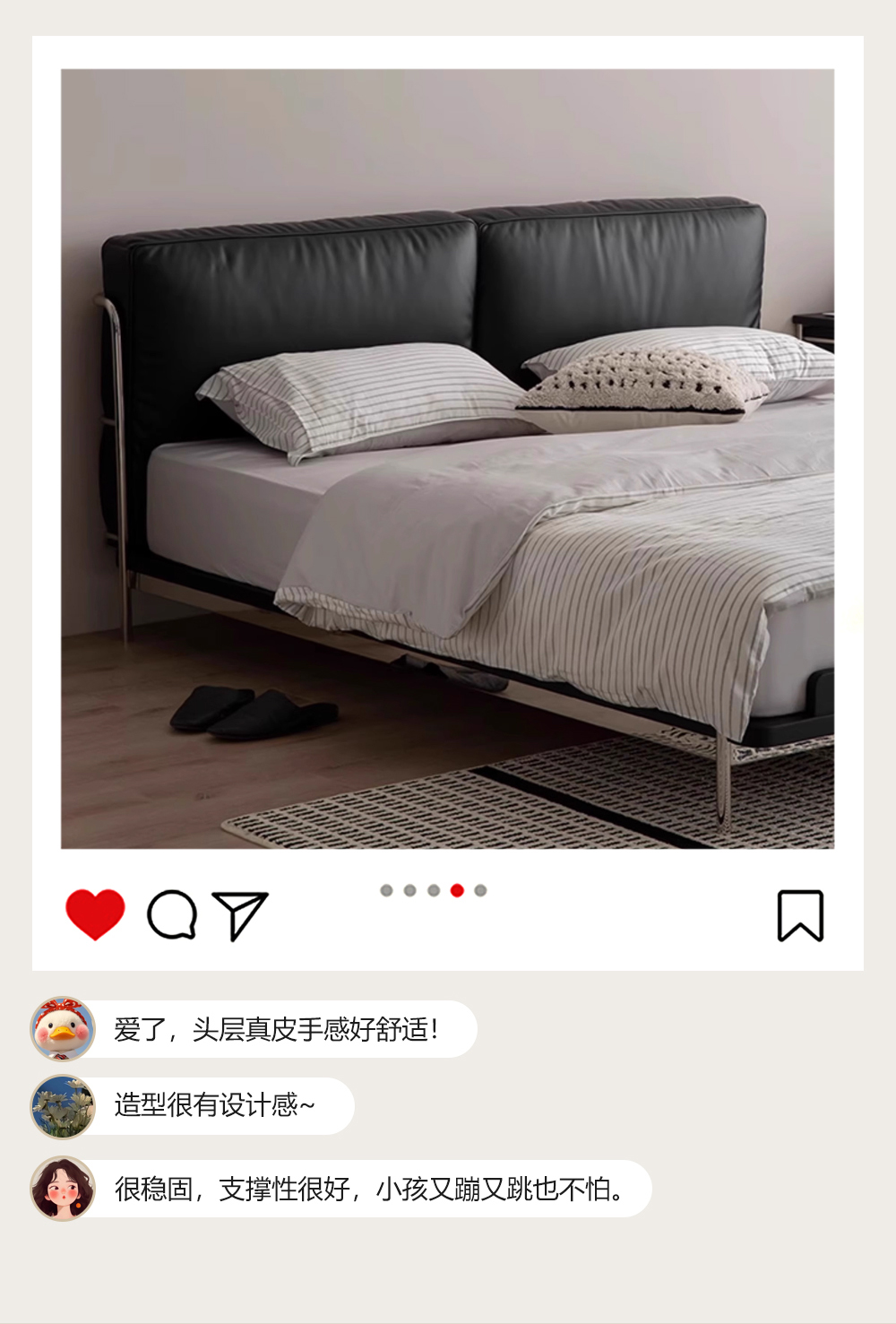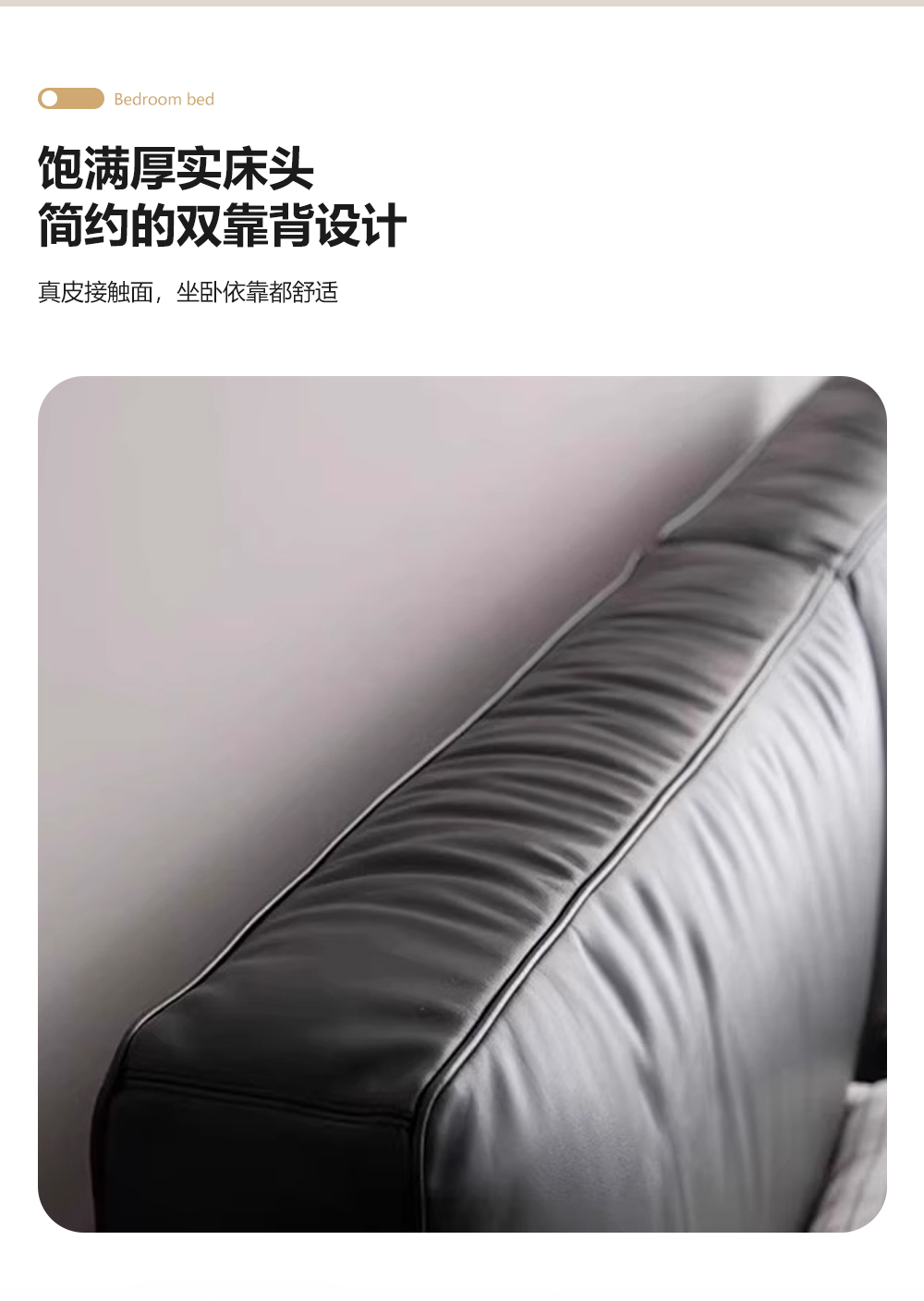 小红书系列 现代简约 实木框架+高回弹海绵+接触面头层牛皮 1.8米床¥4389