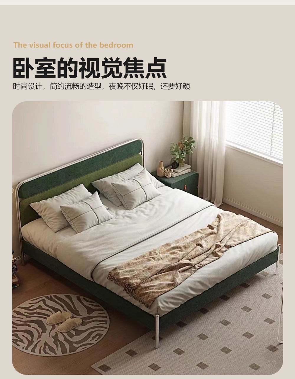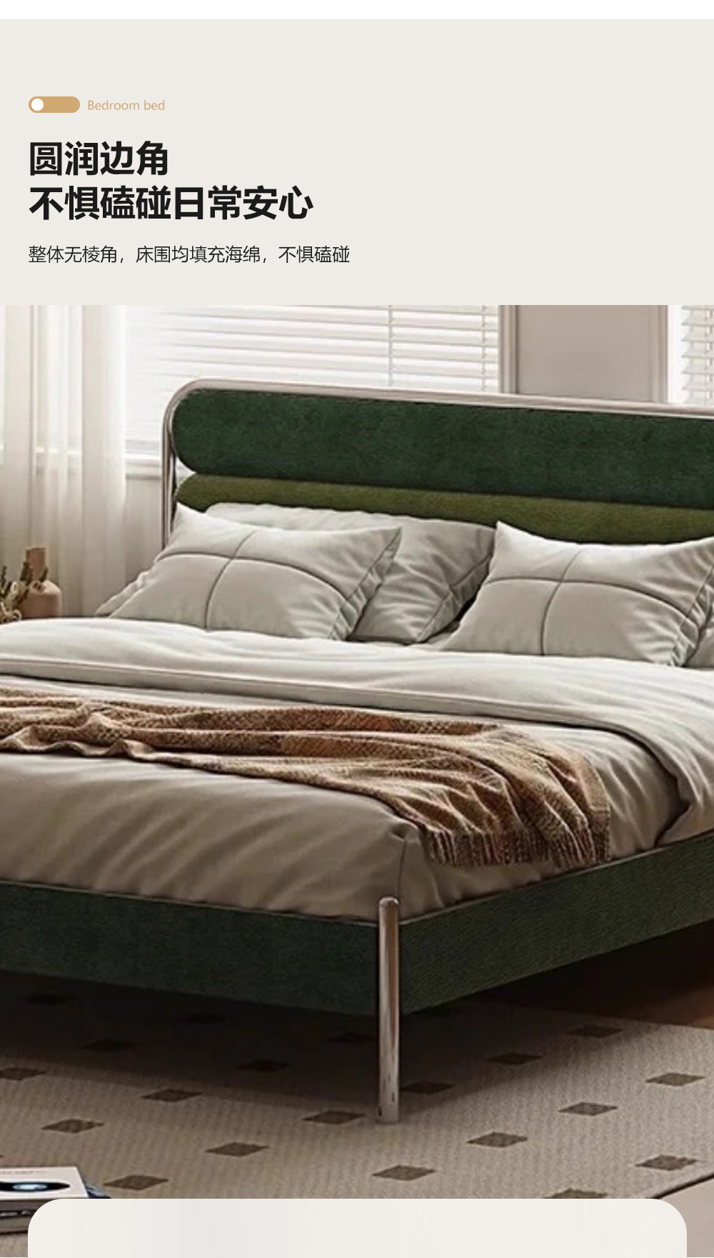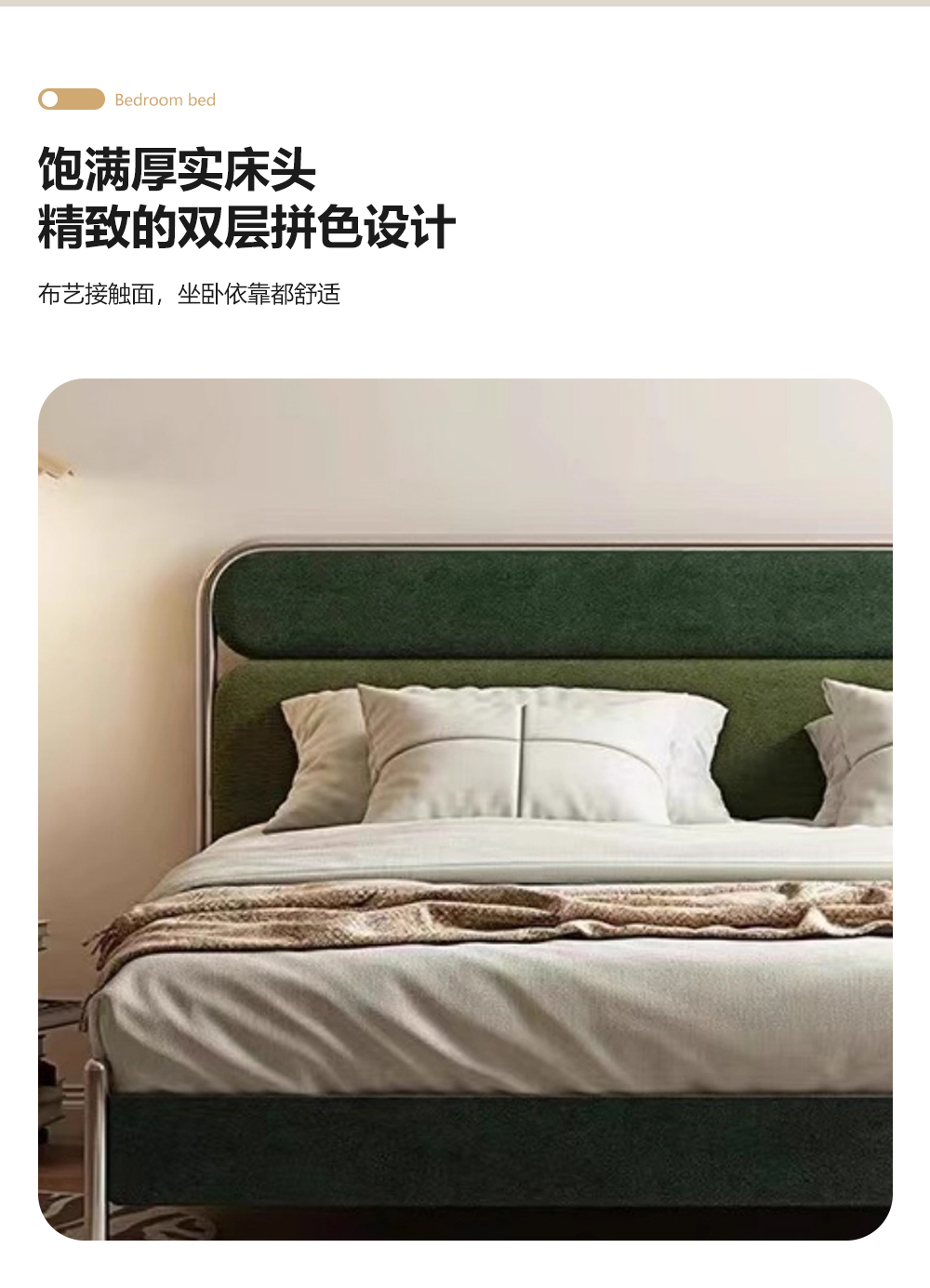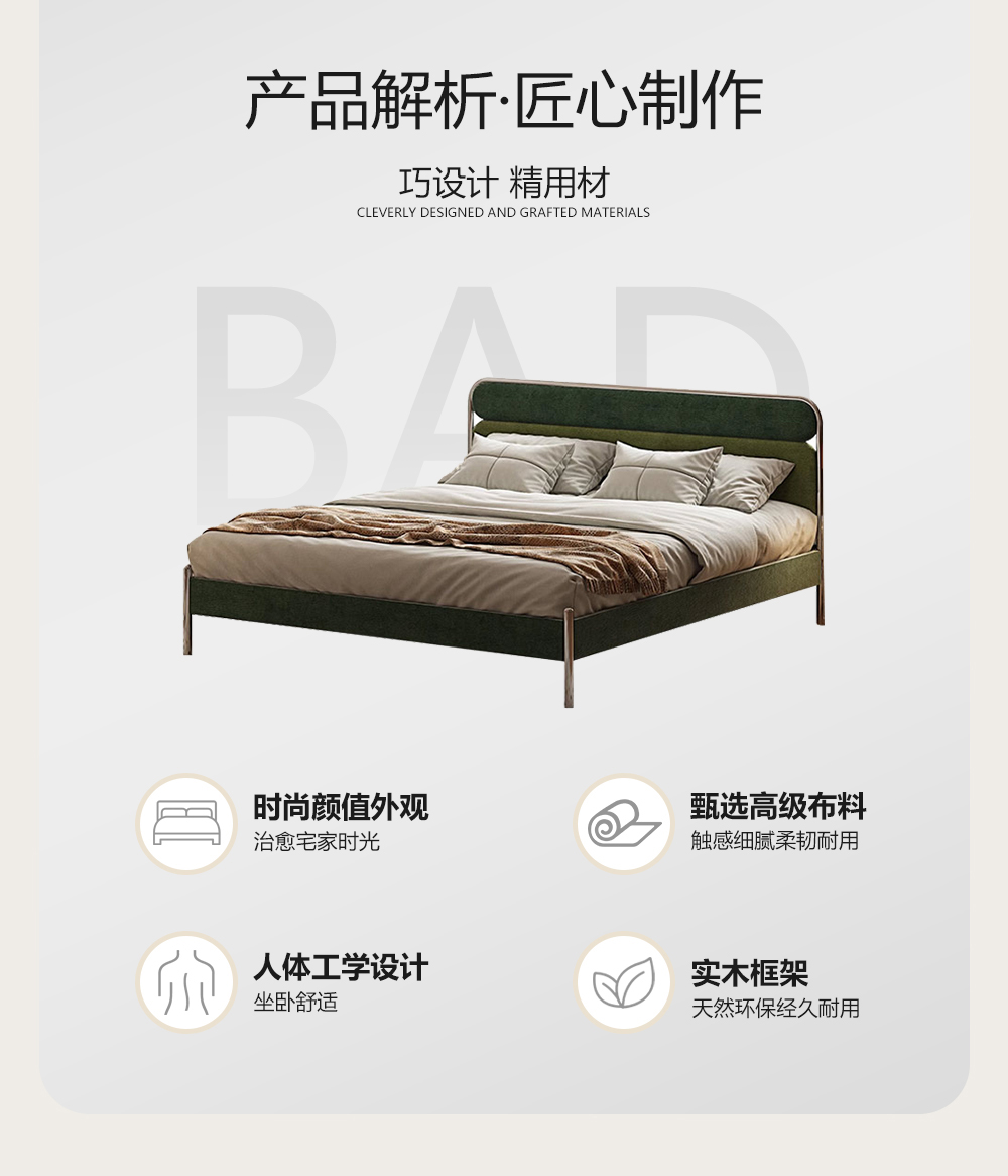 小红书系列 现代简约 实木框架+高回弹海绵+高档面料+不锈钢亮色五金 1.8米床