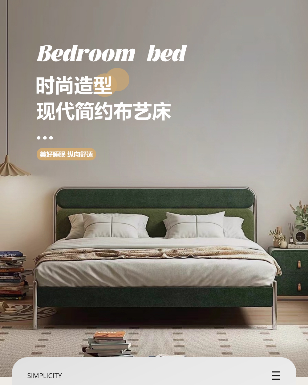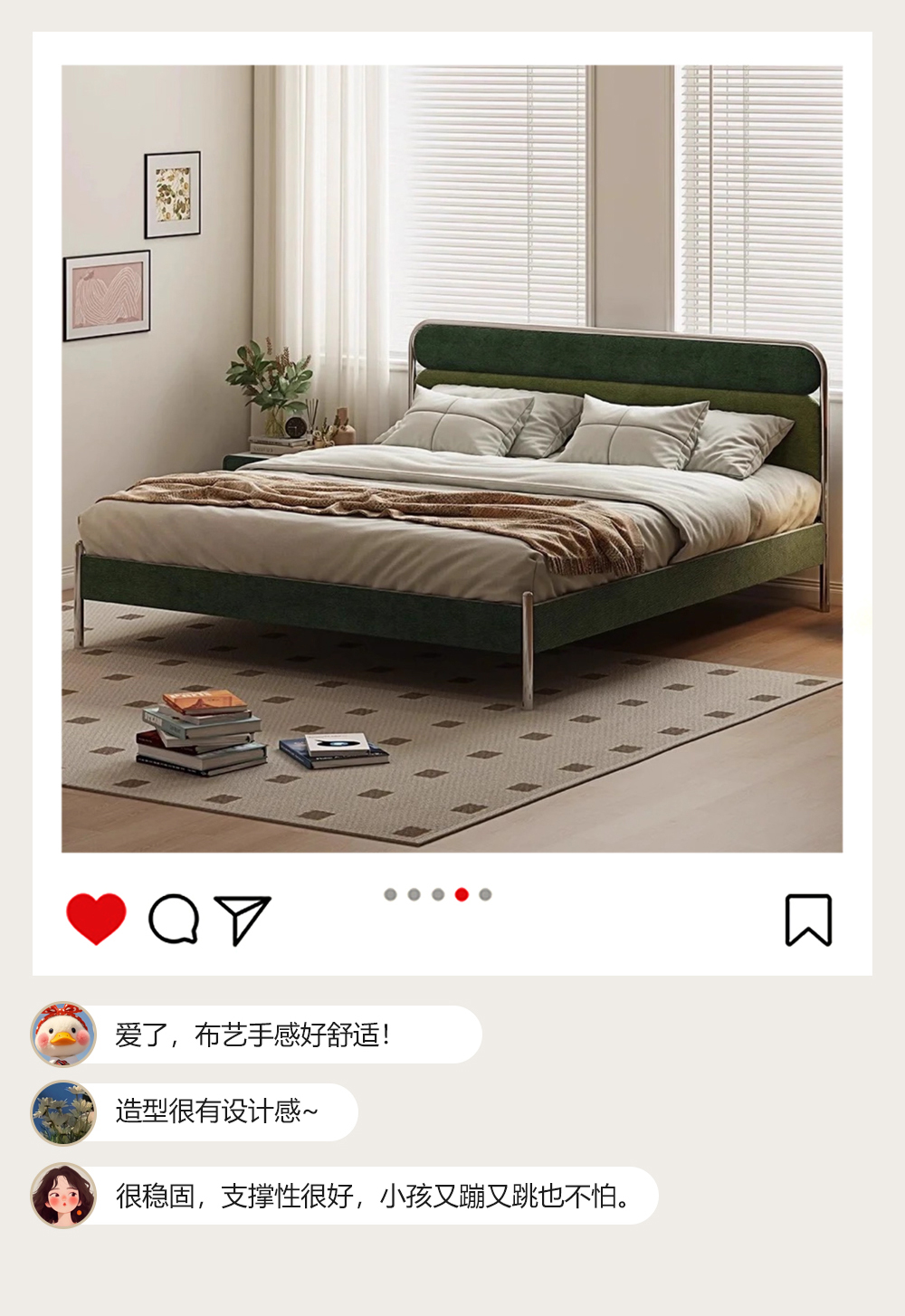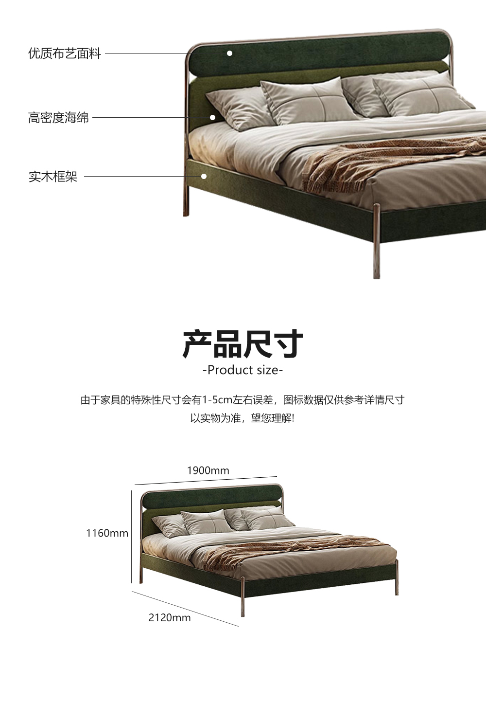 小红书系列 现代简约 实木框架+高回弹海绵+高档面料+不锈钢亮色五金 1.8米床