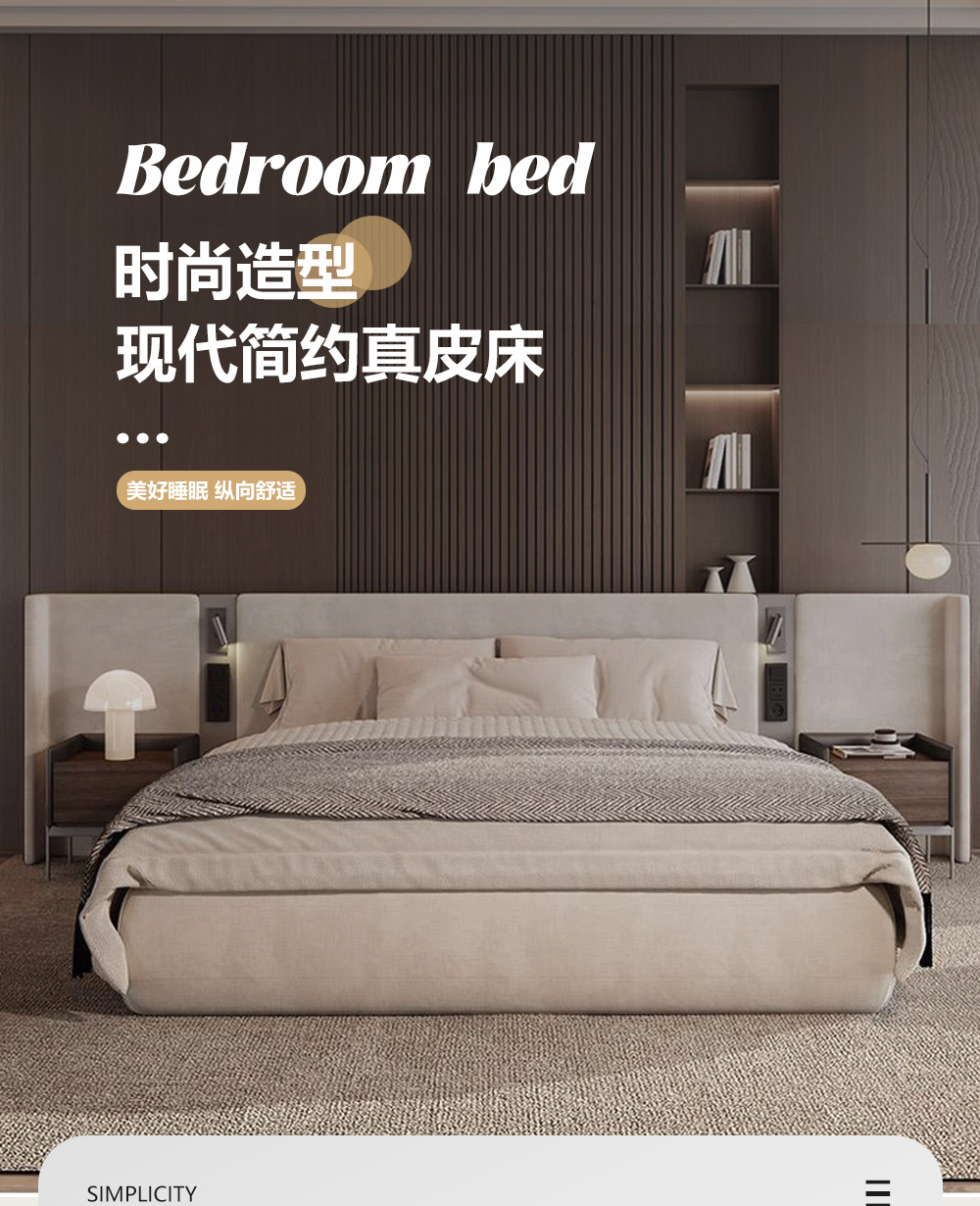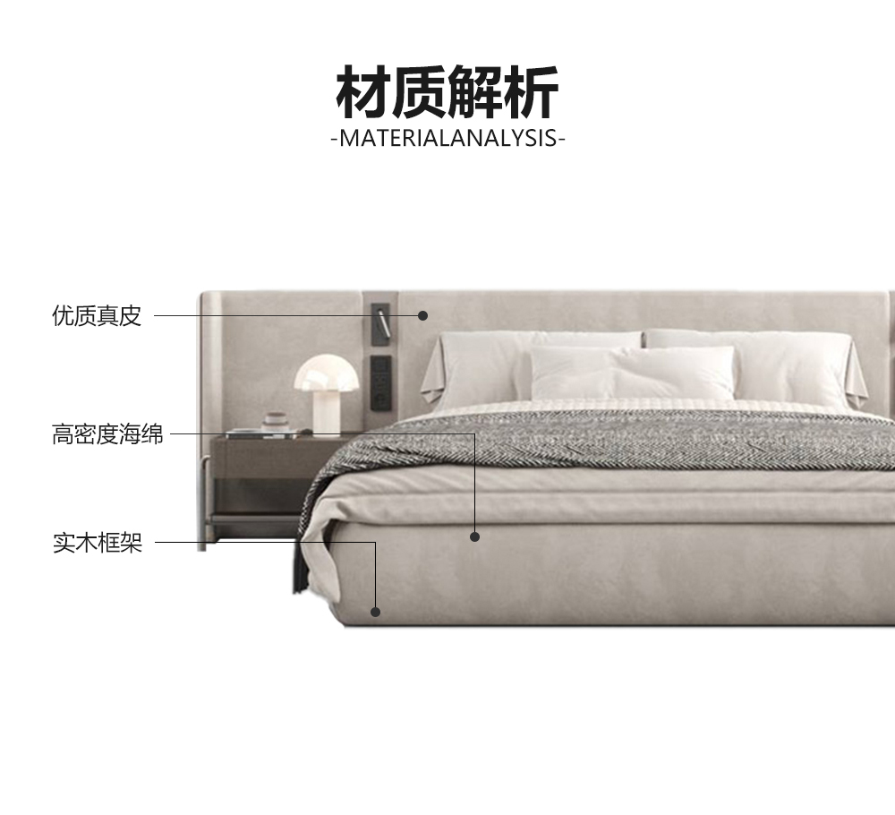 小红书系列 现代简约 实木框架+高回弹海绵+接触面头层牛皮 1.8米床