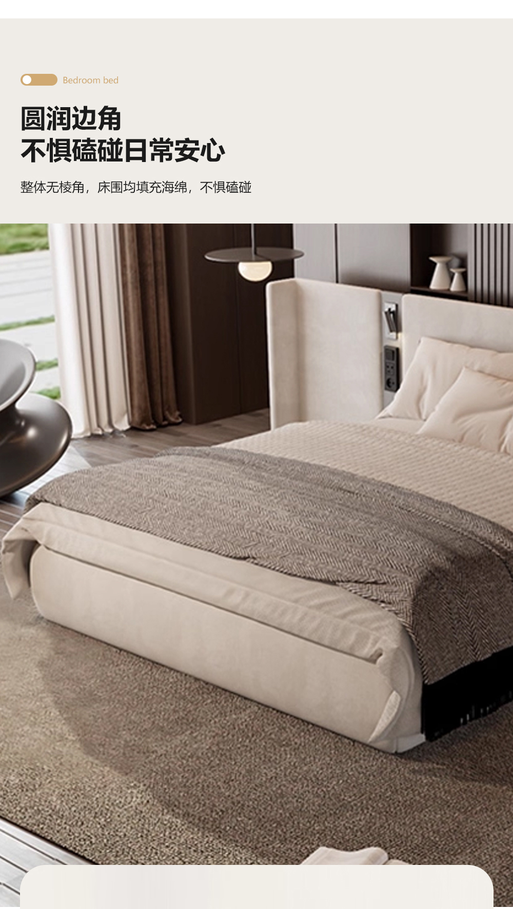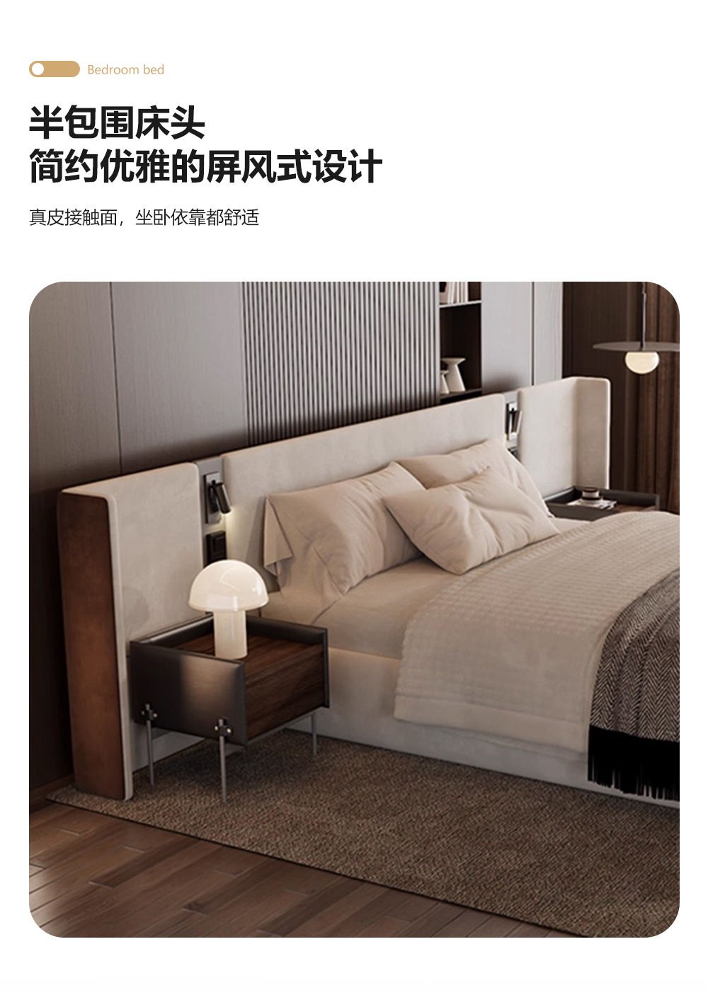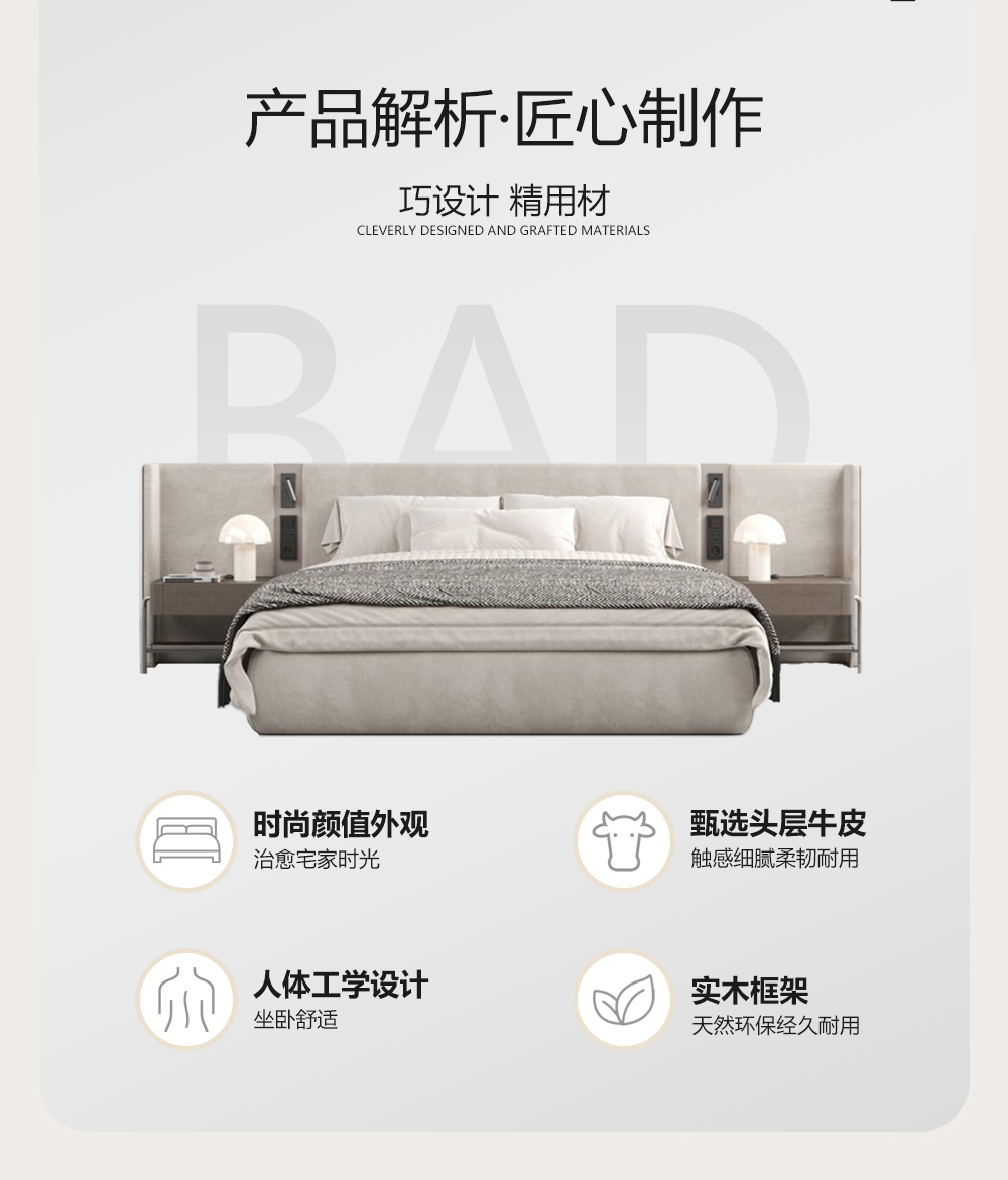 小红书系列 现代简约 实木框架+白蜡木床边+高回弹海绵+接触面头层牛皮+仿皮 1.8米床¥6990