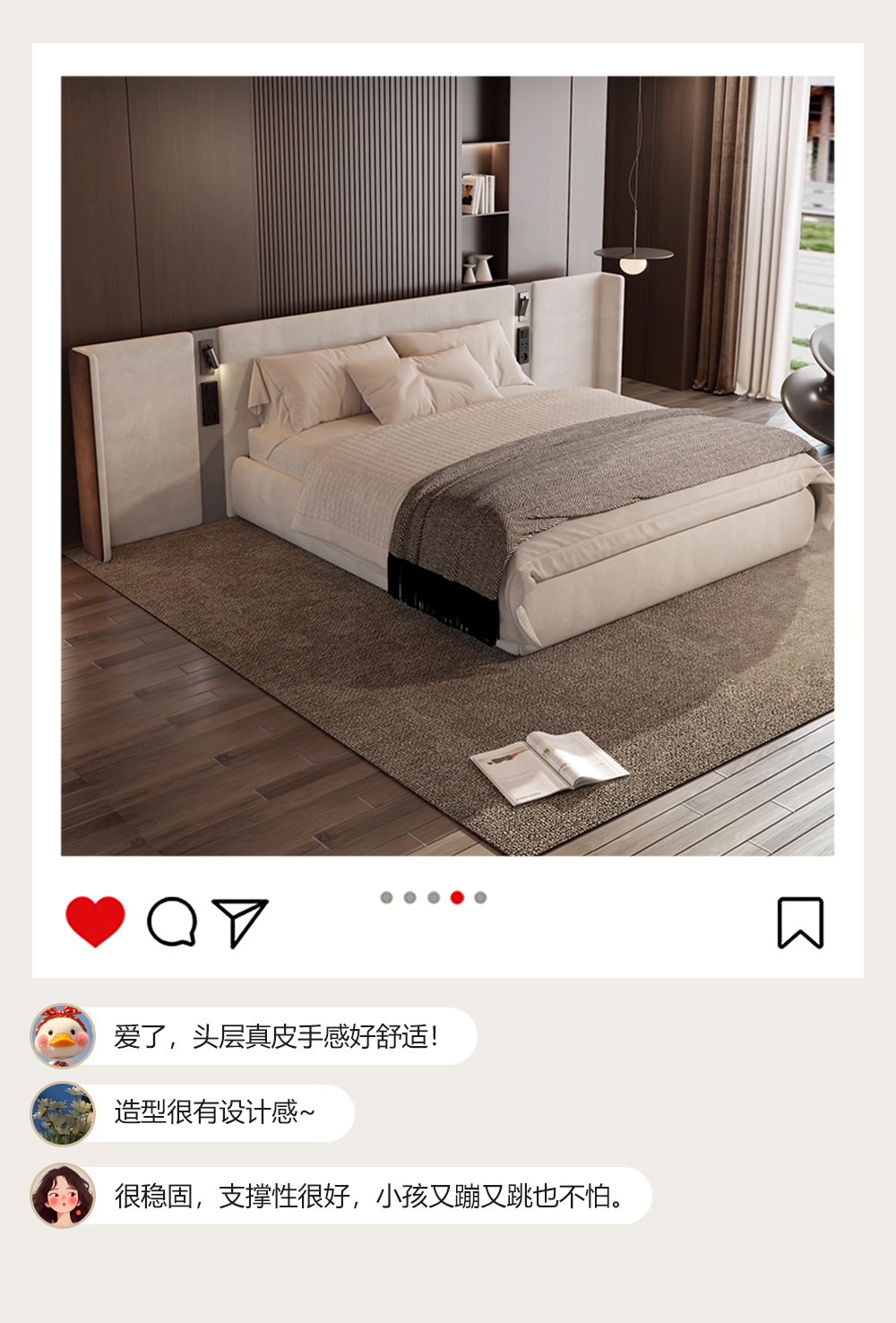小红书系列 现代简约 实木框架+高回弹海绵+接触面头层牛皮 1.8米床¥6990