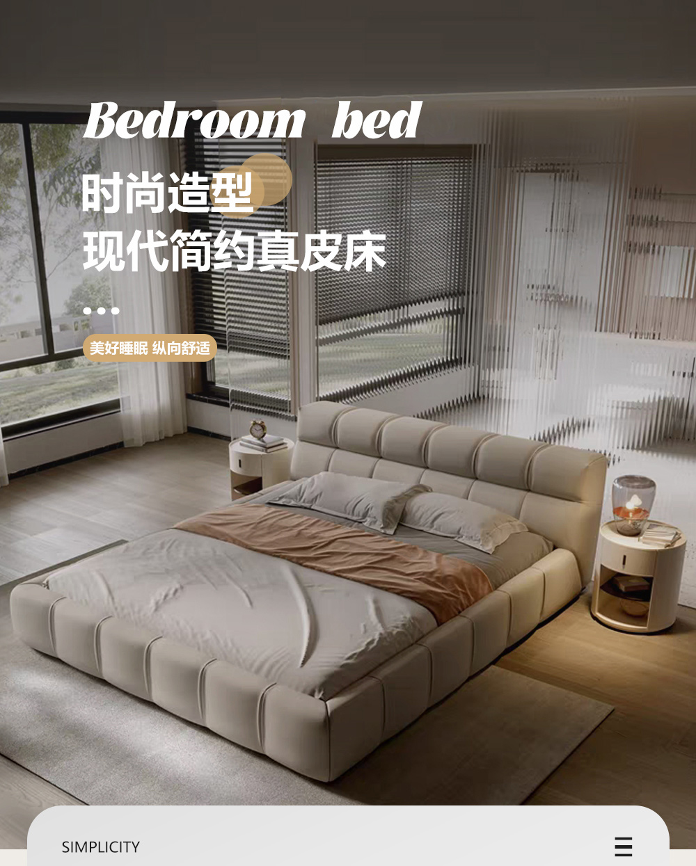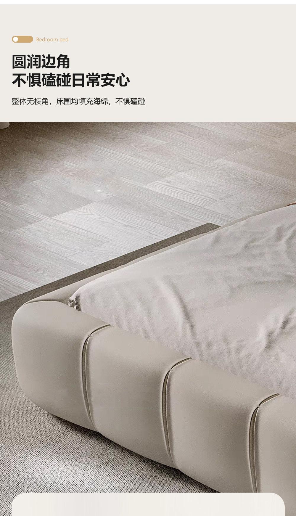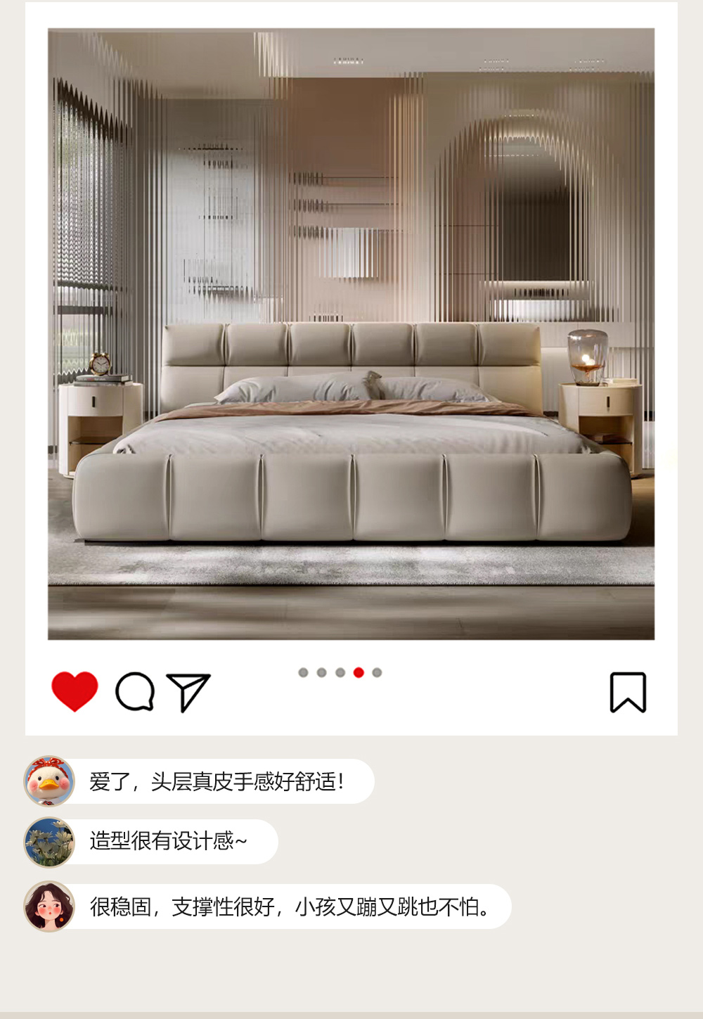 小红书系列 现代简约 实木框架+高回弹海绵+接触面头层牛皮 1.8米床¥4389
