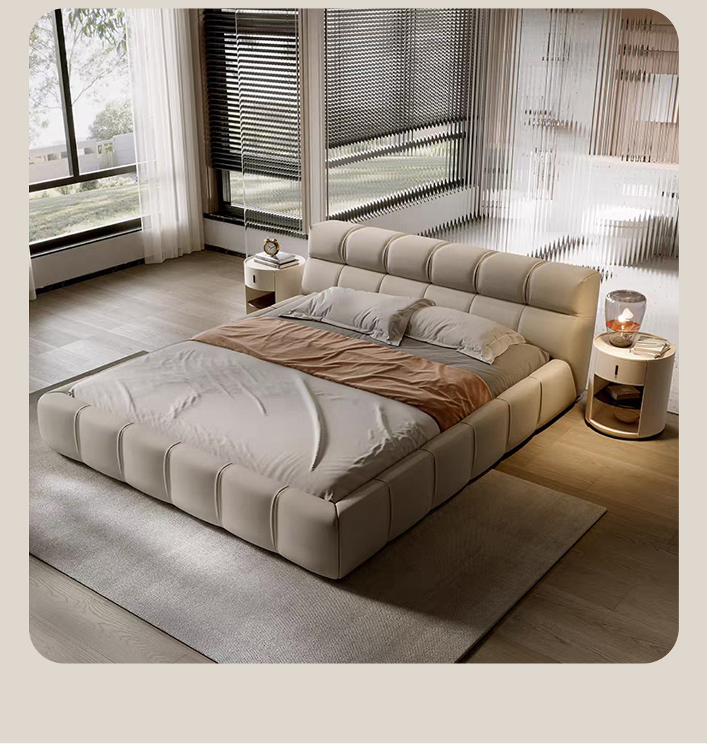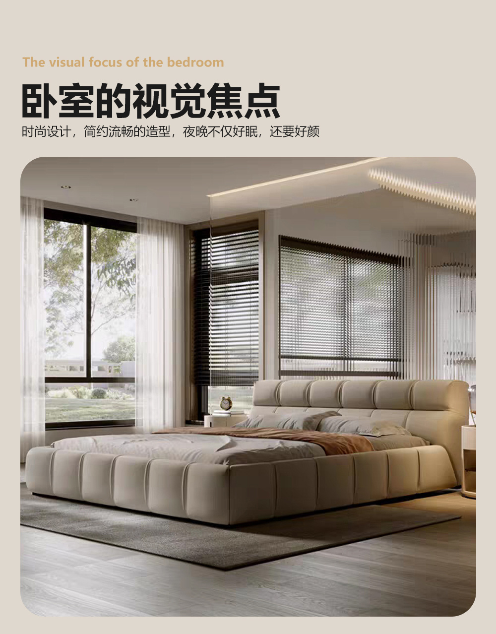 小红书系列 现代简约 实木框架+高回弹海绵+接触面头层牛皮 1.8米床¥6990