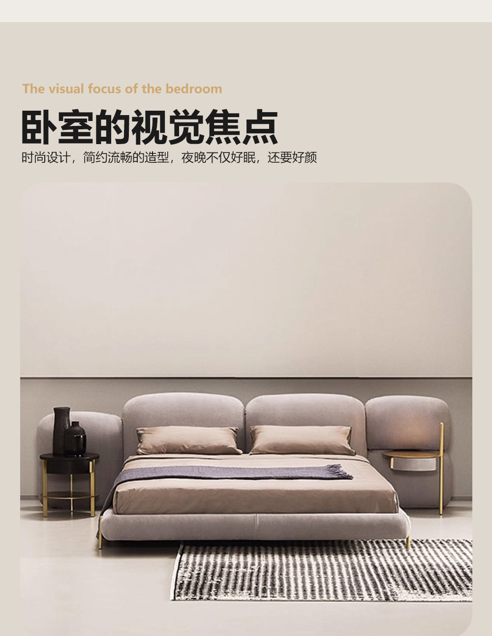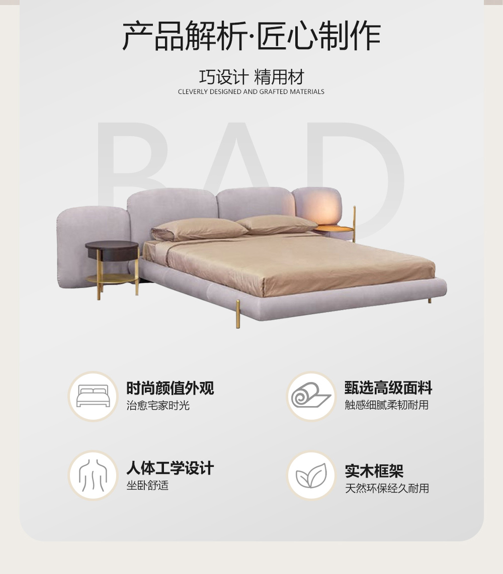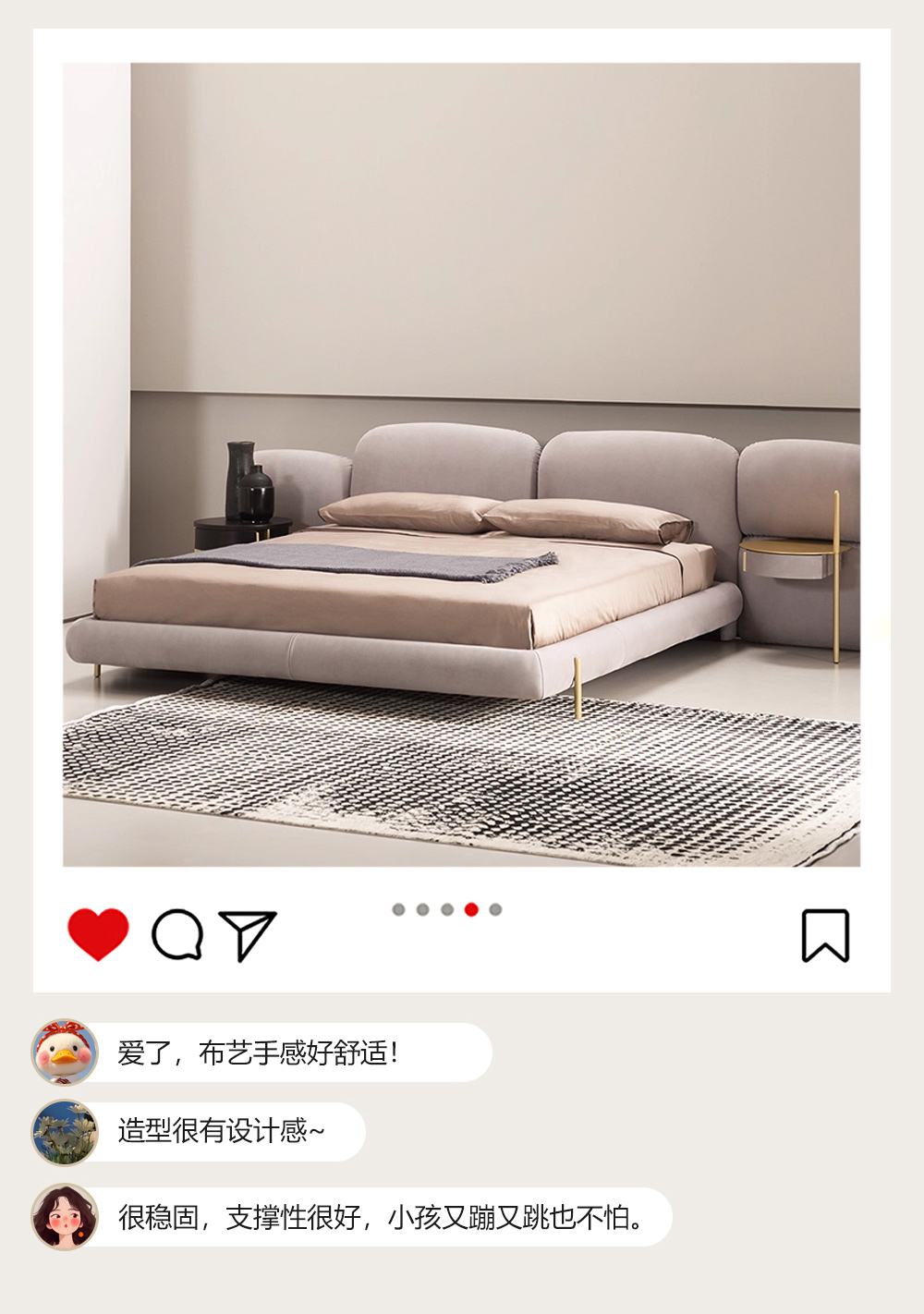 小红书系列 现代简约 实木框架+高回弹海绵+高档磨砂布料 1.8米床¥9704