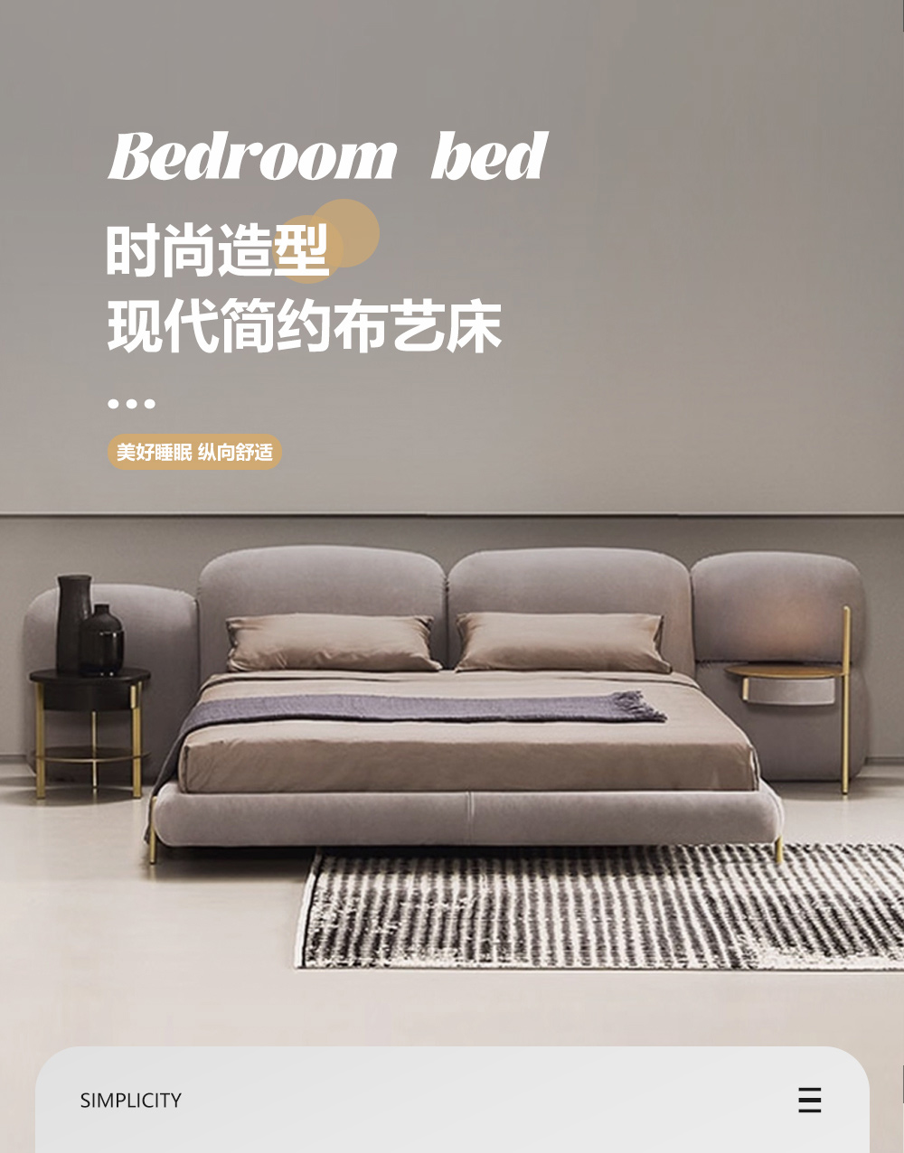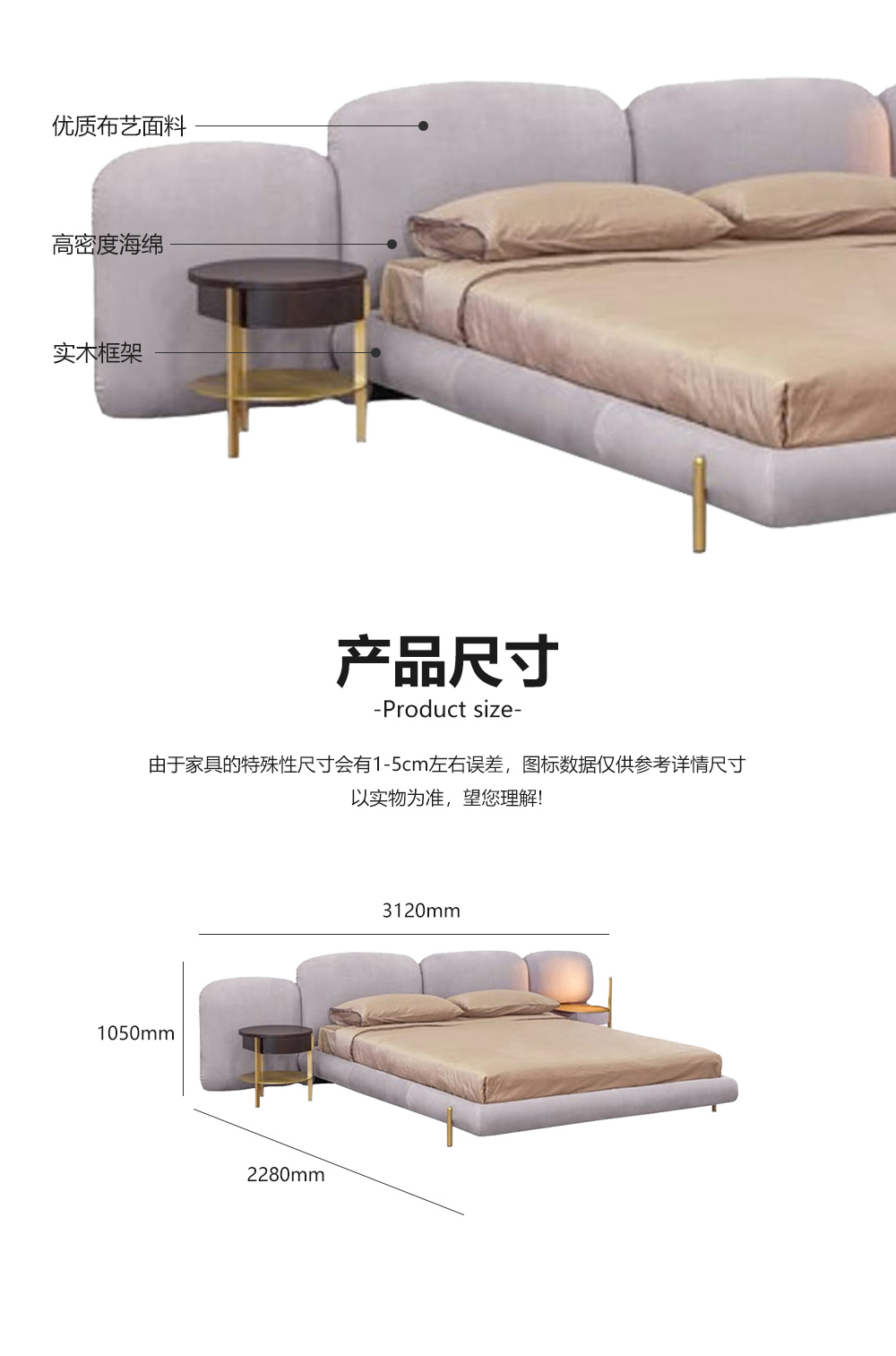 小红书系列 现代简约 实木框架+高回弹海绵+高档磨砂布面料 1.8米床¥7266