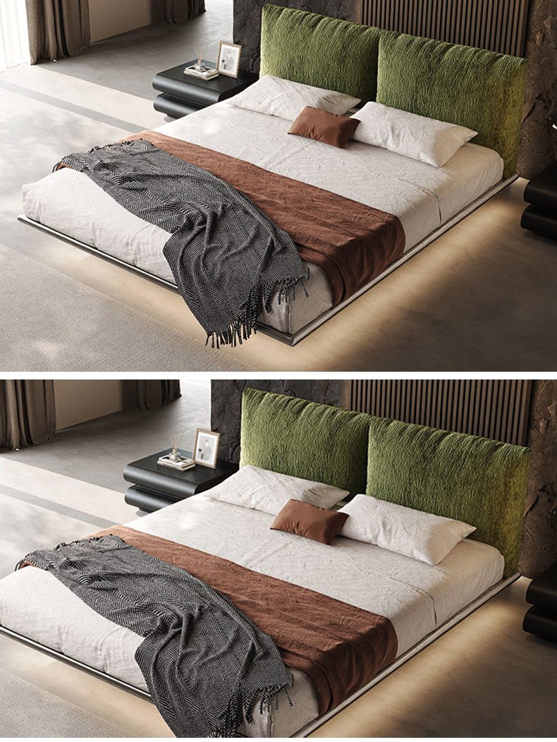 维利品尚 砂砾绒面料+竹炭海棉+全实木床边白蜡木纹+15公分排骨架+不锈钢脚 1.8米床¥4242