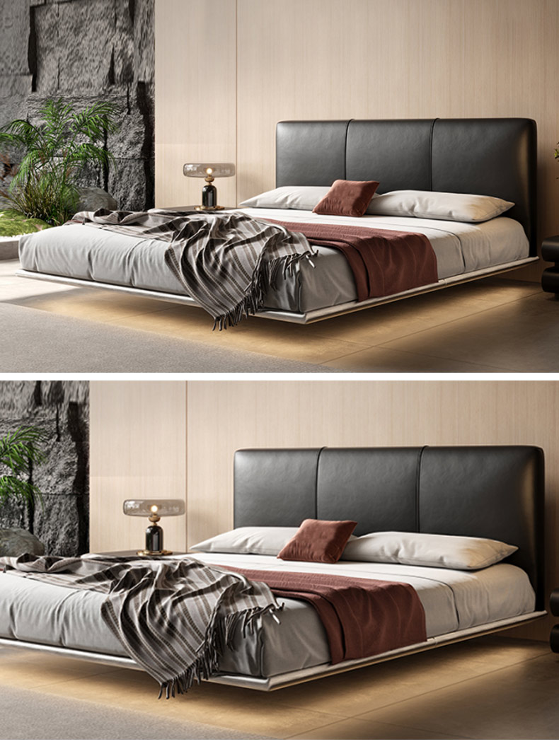 维利品尚 接触面头层真皮+高回弹竹炭海棉+实木内架实木床边+LED感应 1.8米床¥4036
