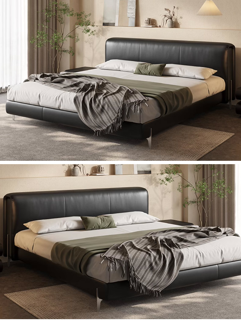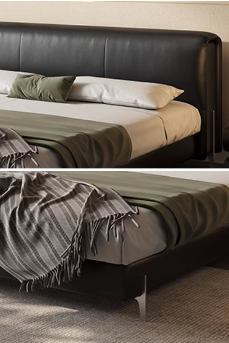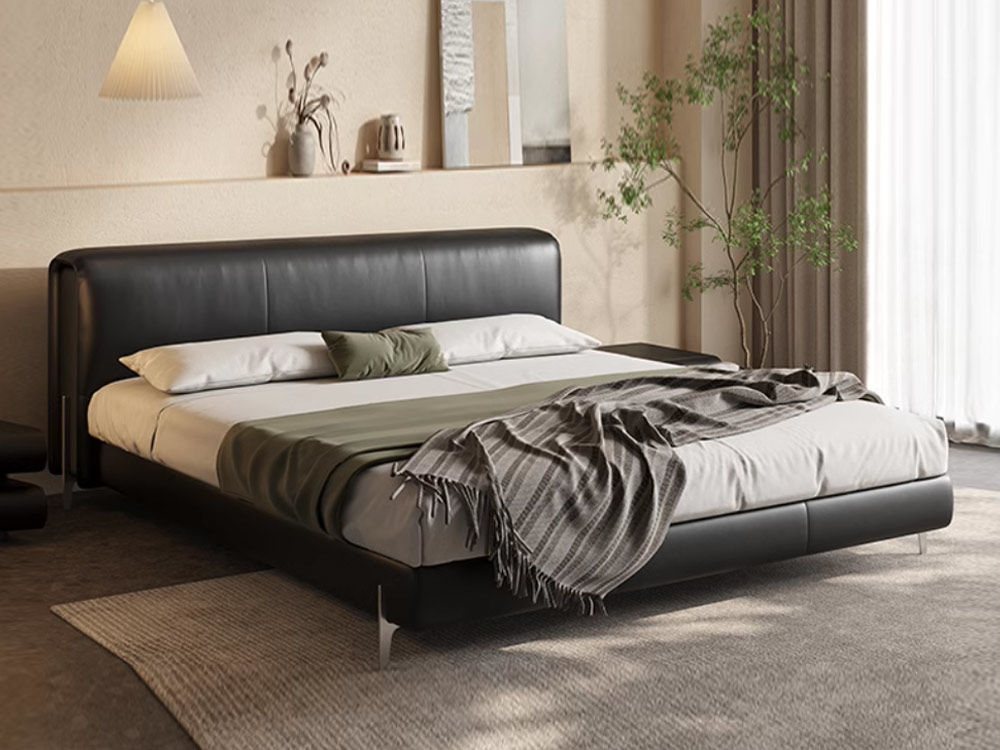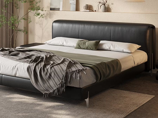 维利品尚 接触面头层原生牛皮+竹炭海绵+实木内架+实木床边+银色电镀五金脚+15公分排骨架/静音排骨架 1.8米床¥4307