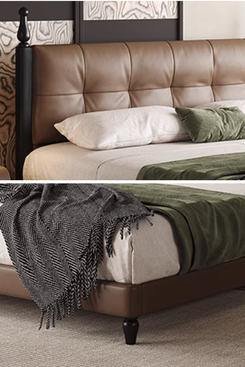 维利品尚 接触面原生头层真皮+靠包:高回弹竹炭海绵+松木内架+实木多层板+实木脚+15公分排骨架 1.8米床¥3738