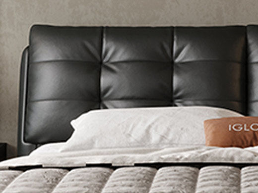维利品尚 接触面头层原生牛皮+靠包:竹炭海绵+实木内架+15公分钢木排骨架/静音排骨架+实木脚 1.8米床¥4050