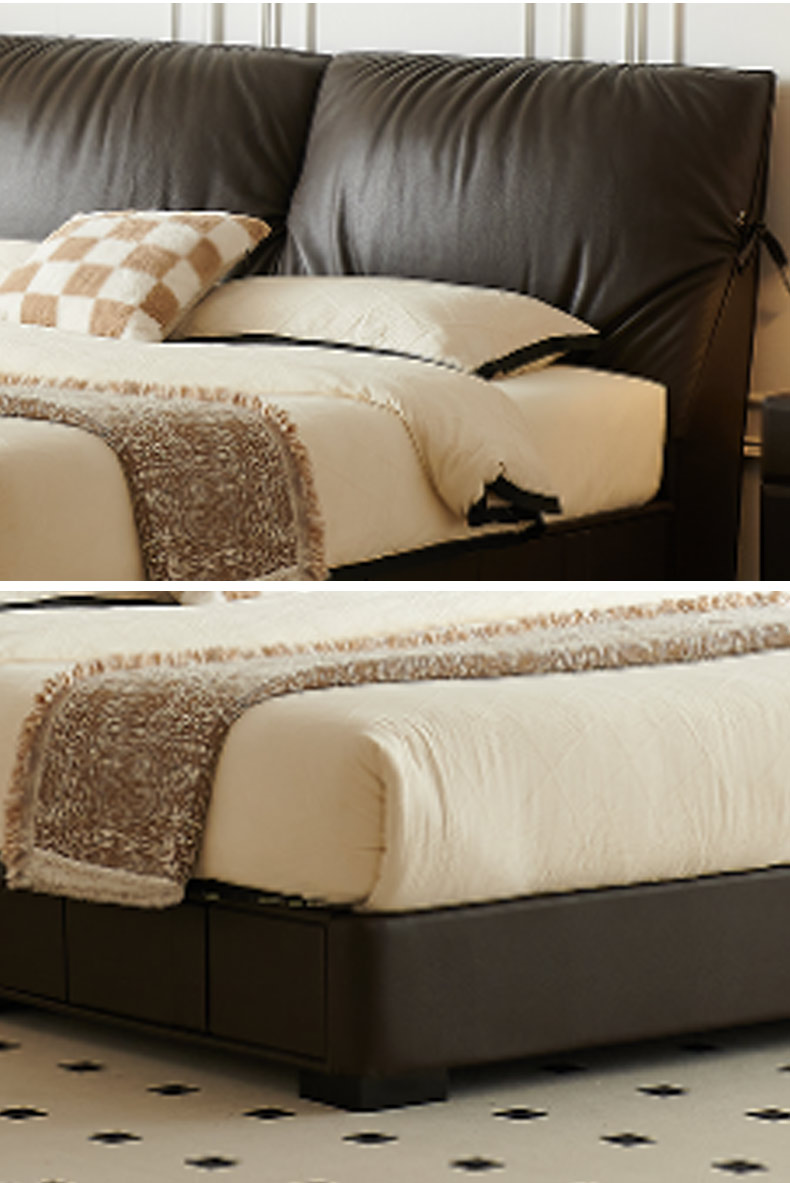 维利品尚 接触面原生头层真皮+靠包:高回弹竹炭海绵+松木内架+实木多层板+实木脚+15公分排骨架 1.8米床¥3738