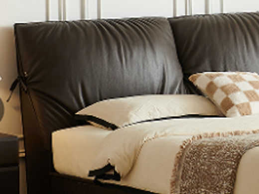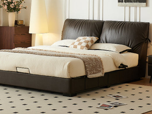 维利品尚 接触面头层原生牛皮+靠包:竹炭海绵+实木内架+15公分钢木排骨架/静音排骨架+实木脚 1.8米床¥4050