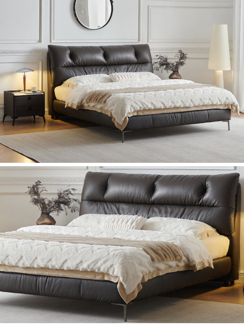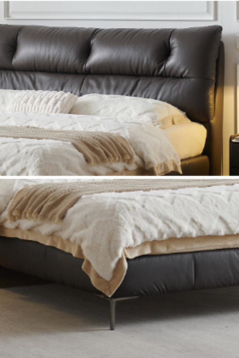 维利品尚 接触面原生头层真皮+靠包:高回弹竹炭海绵+松木内架+实木多层板+实木脚+15公分排骨架 1.8米床¥4145