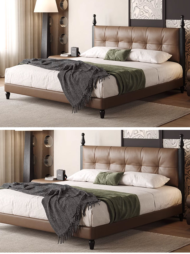 维利品尚 接触面原生头层真皮+靠包:高回弹竹炭海绵+松木内架+实木多层板+实木脚+15公分排骨架 1.8米床¥3738