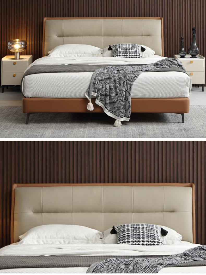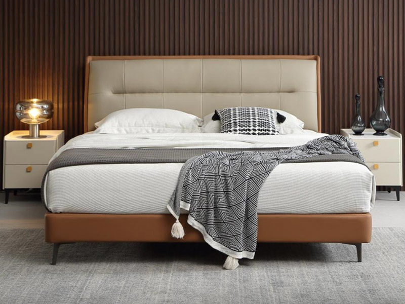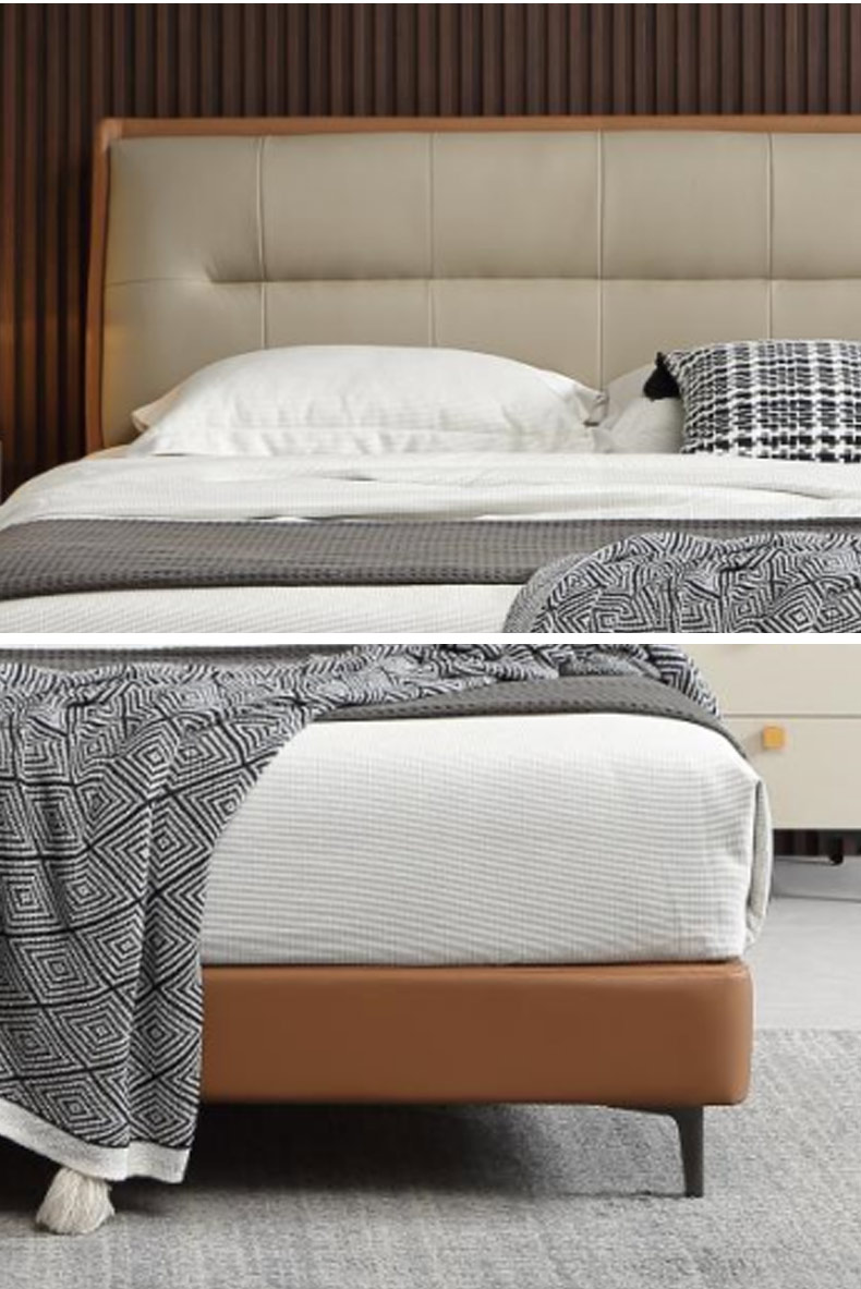 维利品尚 现代简约 接触面头层真皮+高密度海棉+实木内架+10公分钢木排骨架 1.8米床