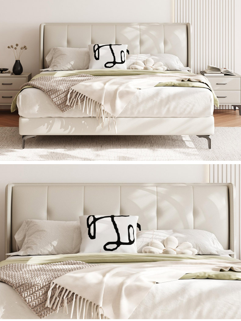维利品尚 现代简约 接触面头层真皮+高密度海棉+实木内架+10公分钢木排骨架 1.8米床