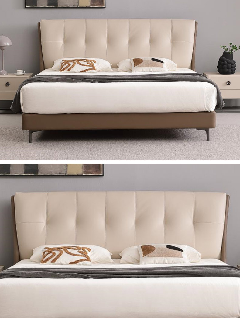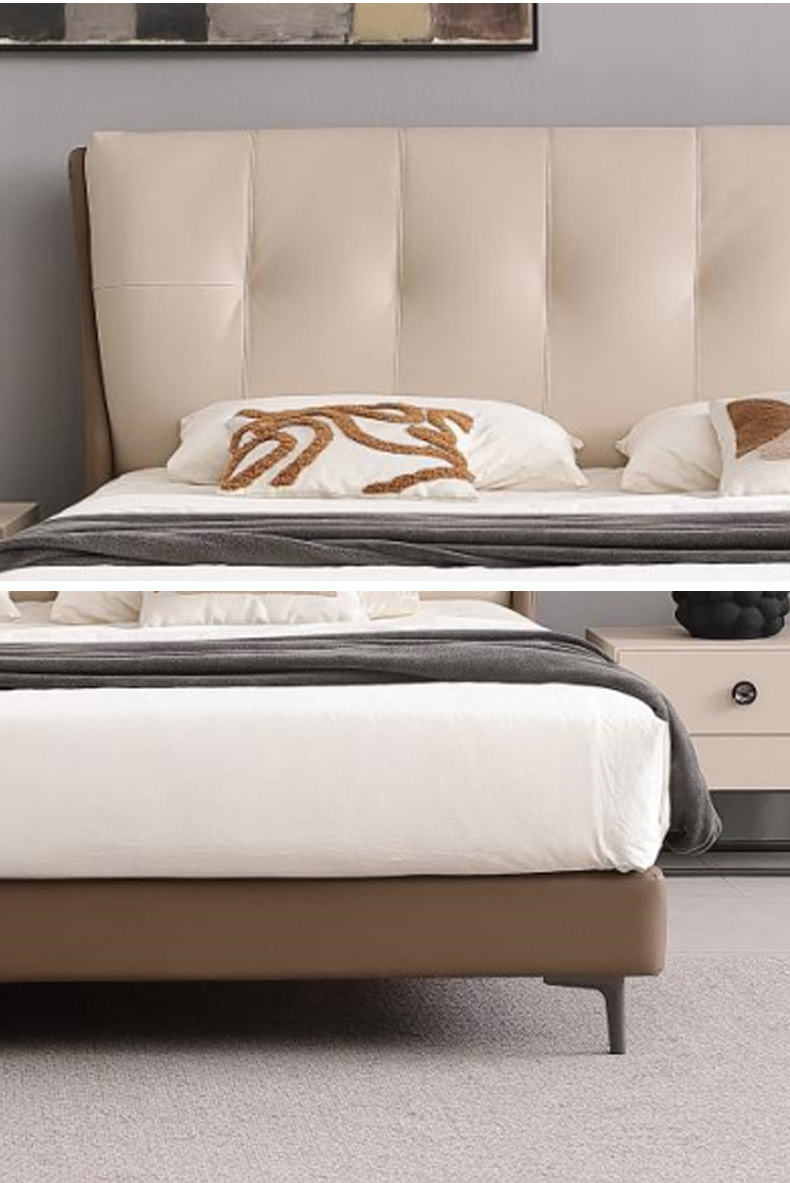 维利品尚 现代简约 接触面头层真皮+高密度海棉+实木内架+10公分钢木排骨架 1.8米床