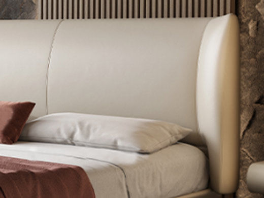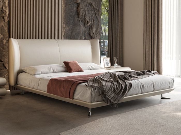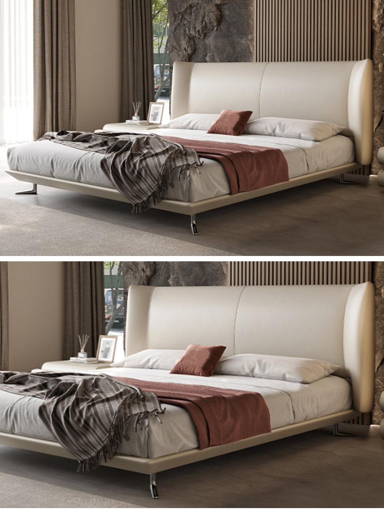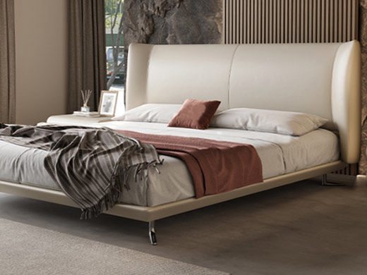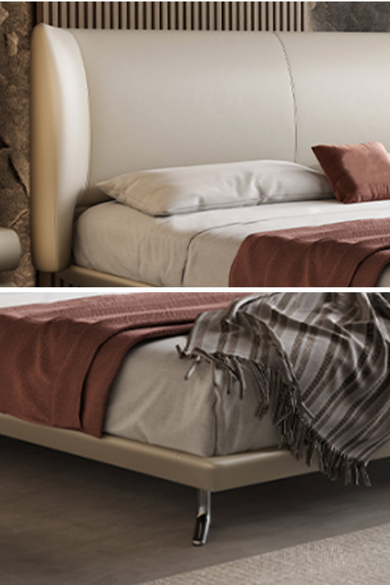 维利品尚 现代简约 接触面头层真皮+高密度海棉+实木内架+15公分钢木排骨架+银色鸭子脚 1.8米床