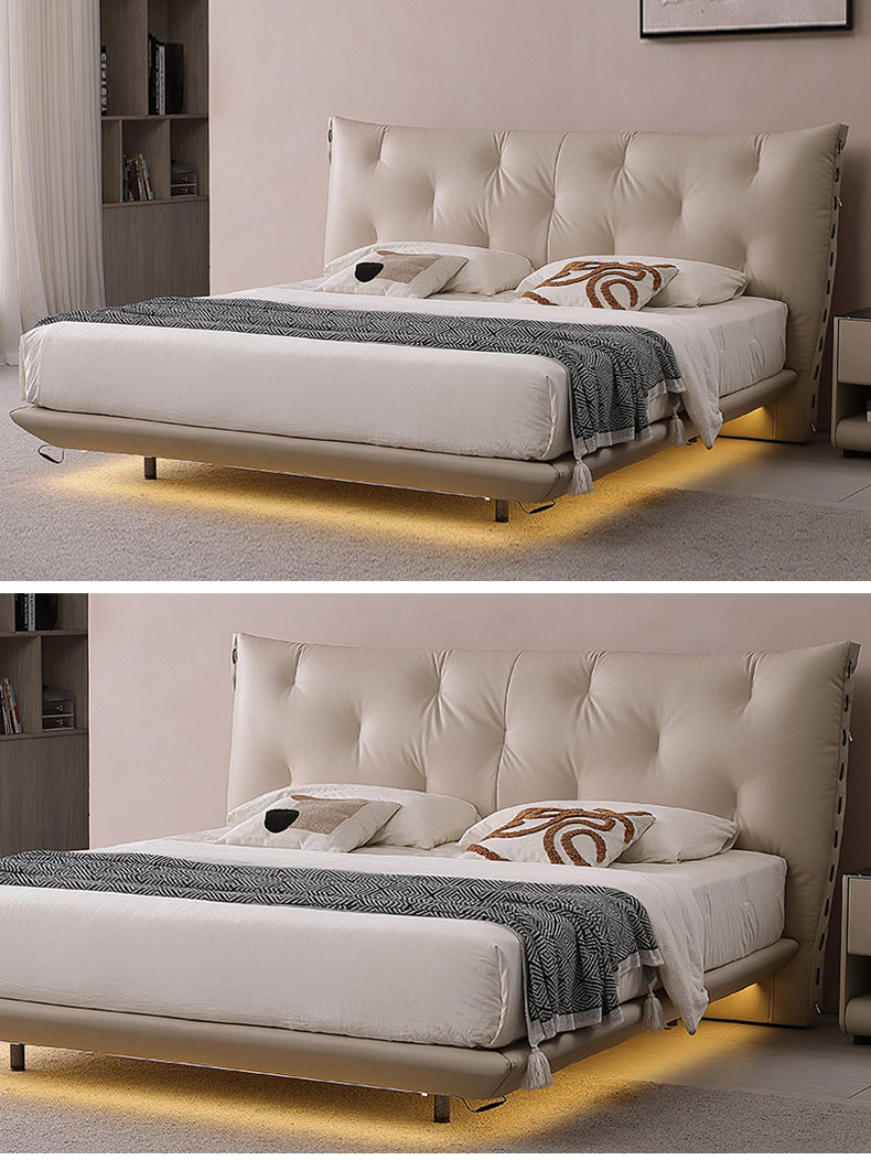 维利品尚 现代简约 接触面头层真皮+高密度海棉+实木内架+10公分钢木排骨架 1.8米床