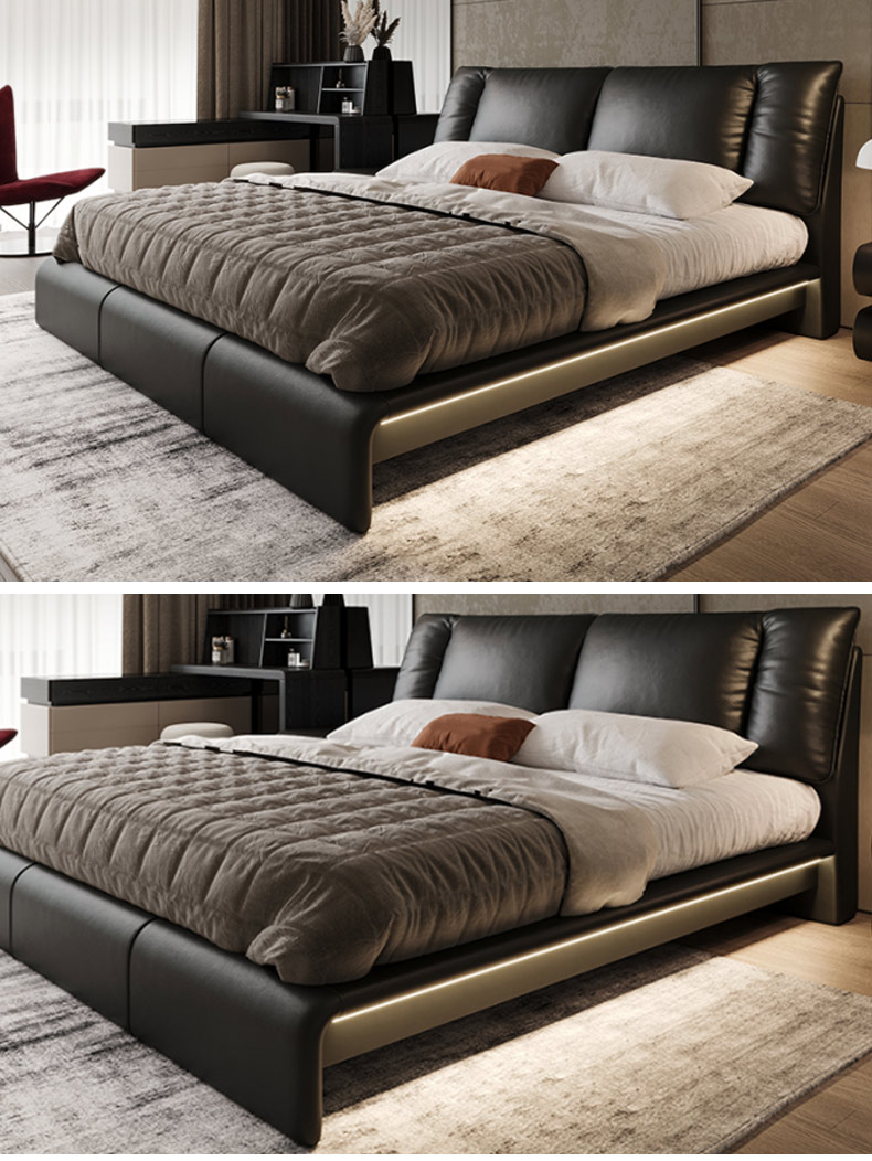 维利品尚 现代简约 接触面头层真皮+填充:竹炭海绵+实木内架+15公分排骨架+LED感应灯 1.8米悬浮床¥3118
