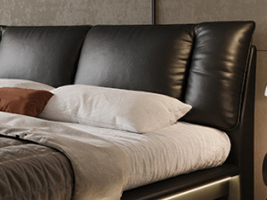 维利品尚 现代简约 接触面头层真皮+填充:竹炭海绵+实木内架+15公分排骨架+LED感应灯 1.8米床